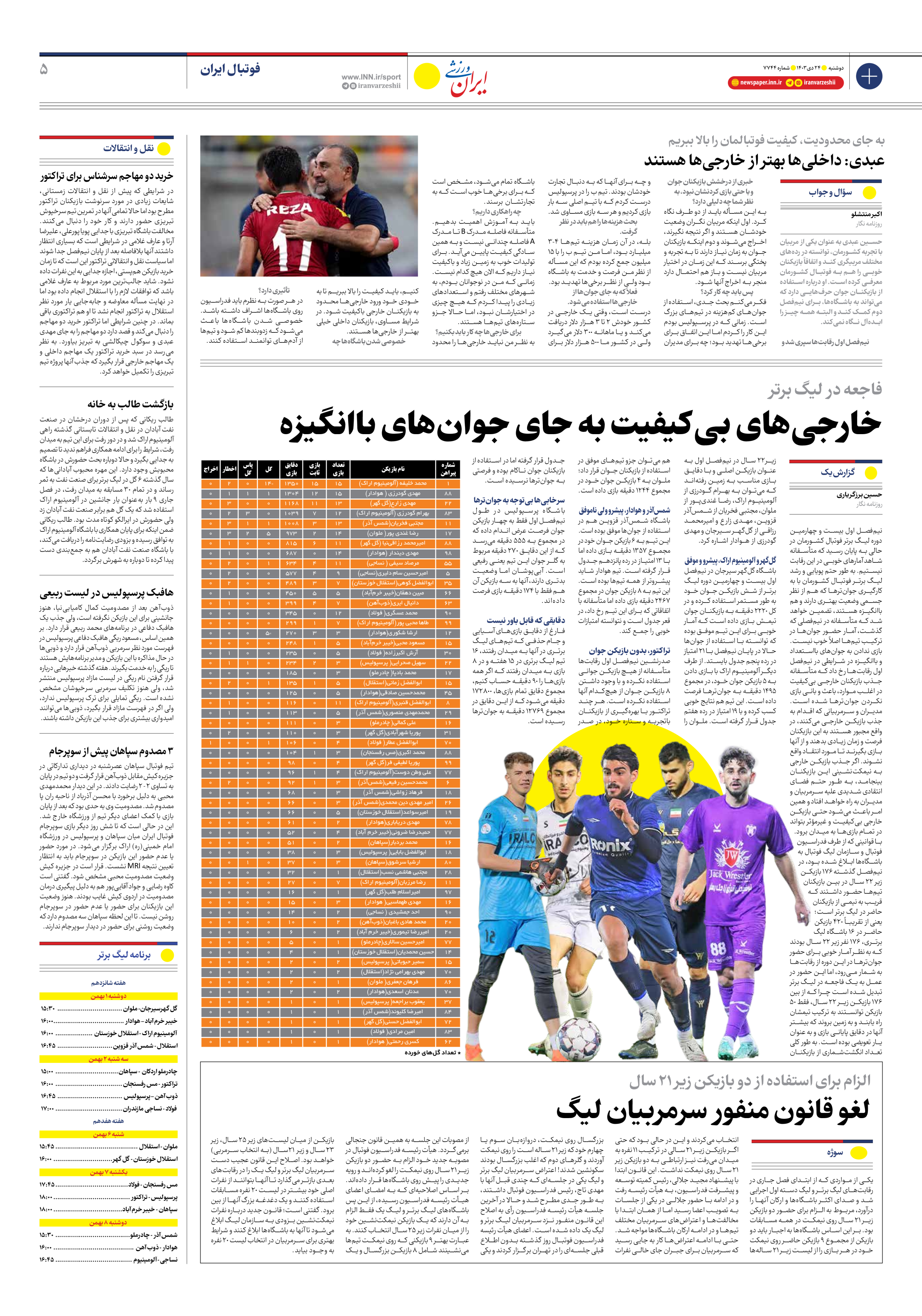 روزنامه ایران ورزشی - شماره هفت هزار و هفتصد و چهل و چهار - ۲۴ دی ۱۴۰۳ - صفحه ۵