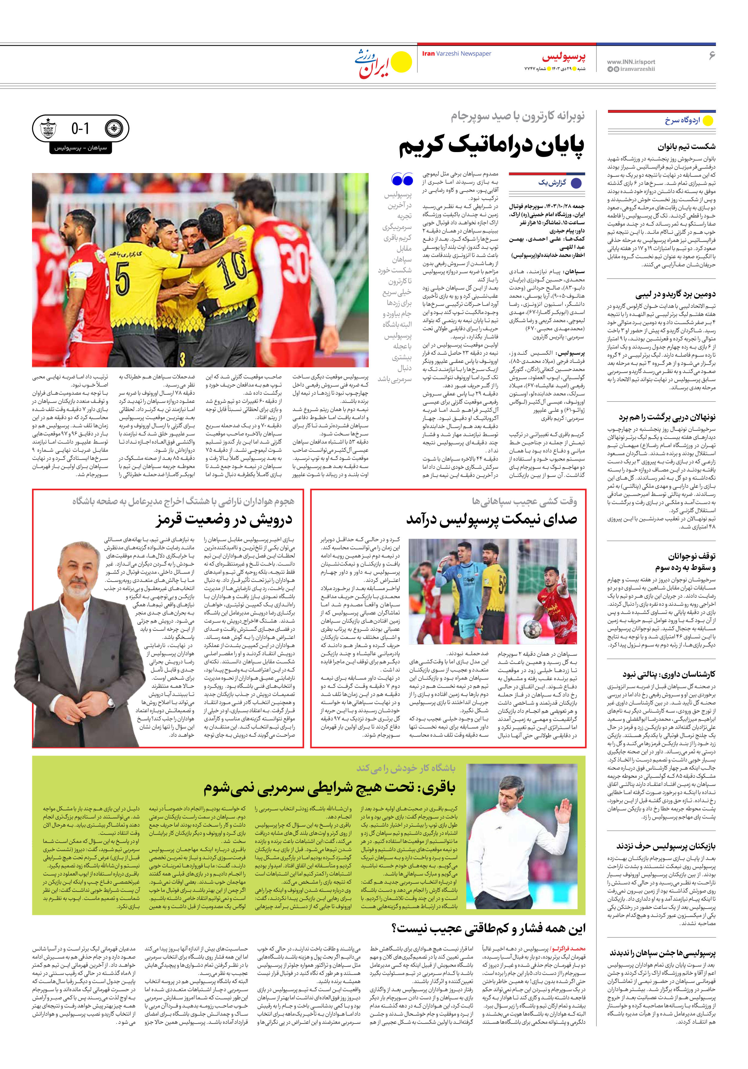 روزنامه ایران ورزشی - شماره هفت هزار و هفتصد و چهل و هفت - ۲۹ دی ۱۴۰۳ - صفحه ۶