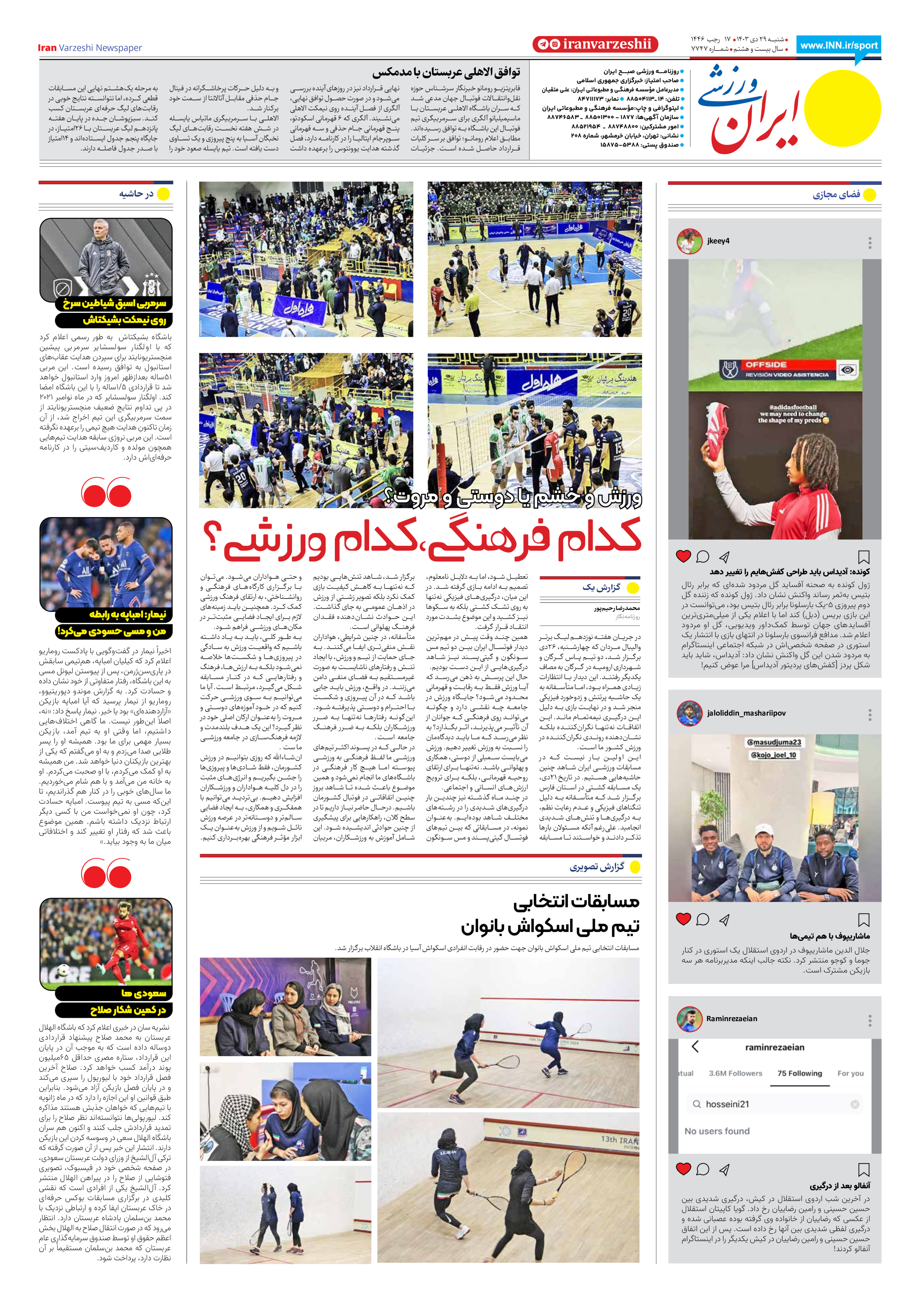روزنامه ایران ورزشی - شماره هفت هزار و هفتصد و چهل و هفت - ۲۹ دی ۱۴۰۳ - صفحه ۸