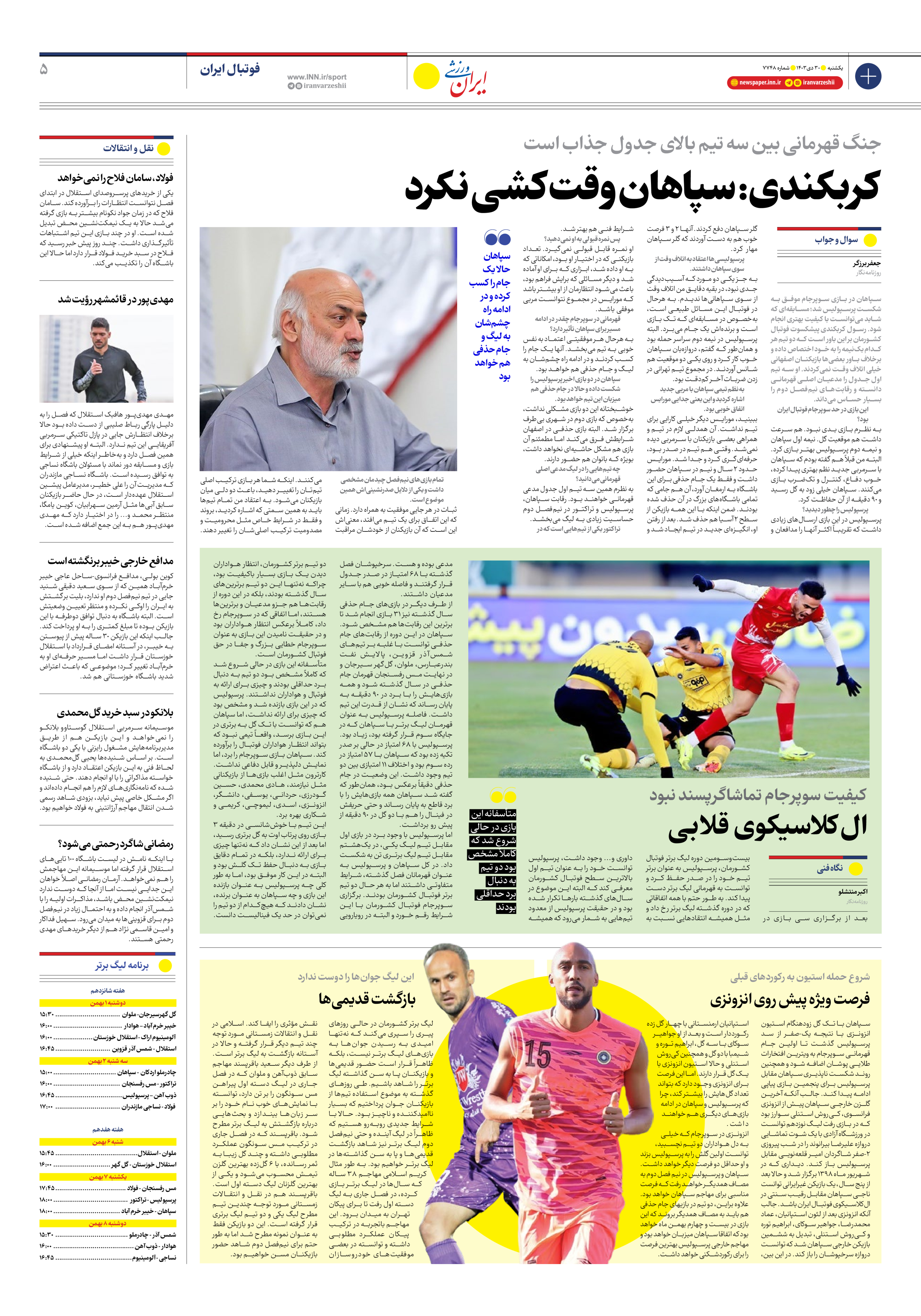 روزنامه ایران ورزشی - شماره هفت هزار و هفتصد و چهل و هشت - ۳۰ دی ۱۴۰۳ - صفحه ۵