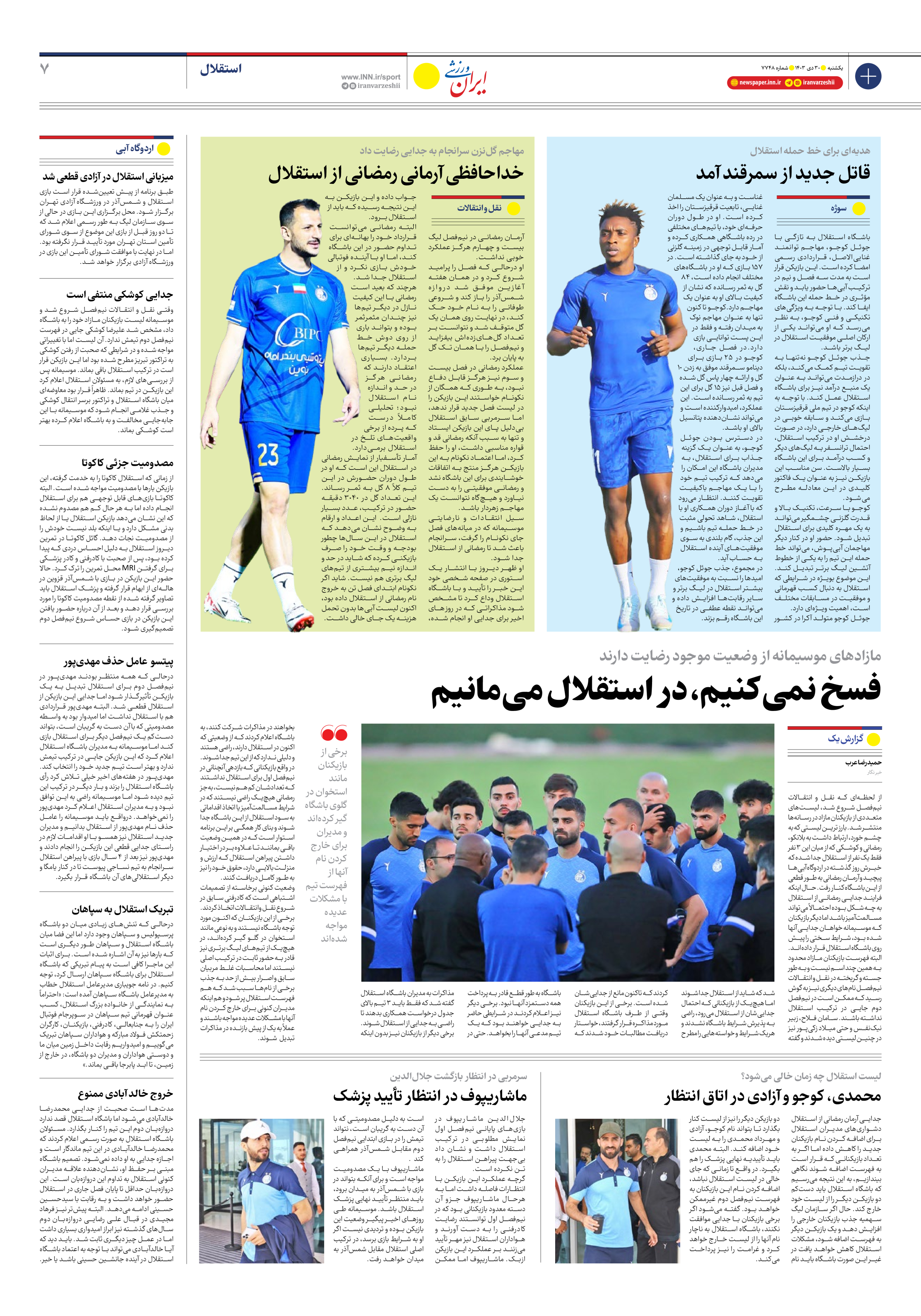 روزنامه ایران ورزشی - شماره هفت هزار و هفتصد و چهل و هشت - ۳۰ دی ۱۴۰۳ - صفحه ۷