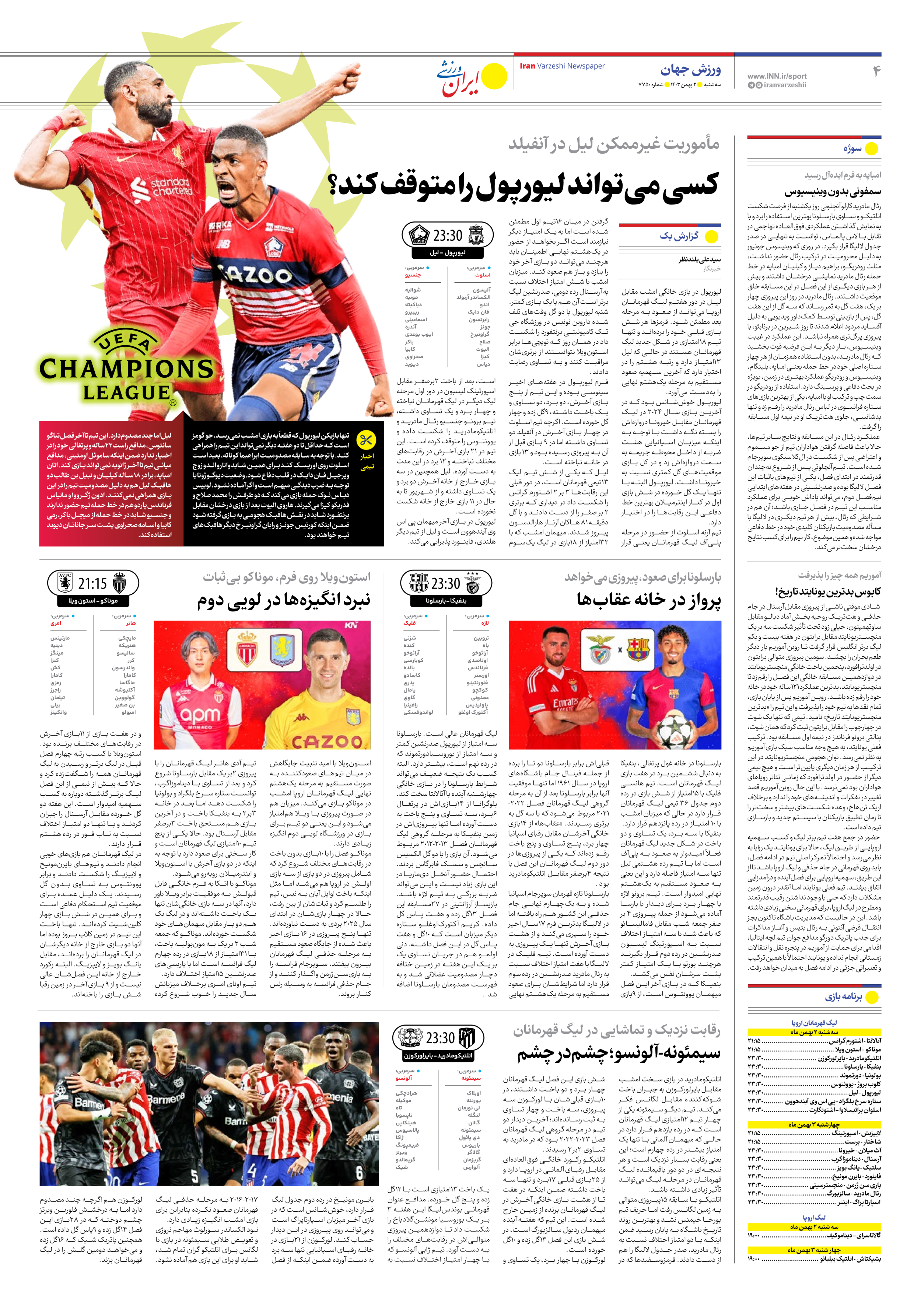 روزنامه ایران ورزشی - شماره هفت هزار و هفتصد و پنجاه - ۰۲ بهمن ۱۴۰۳ - صفحه ۴