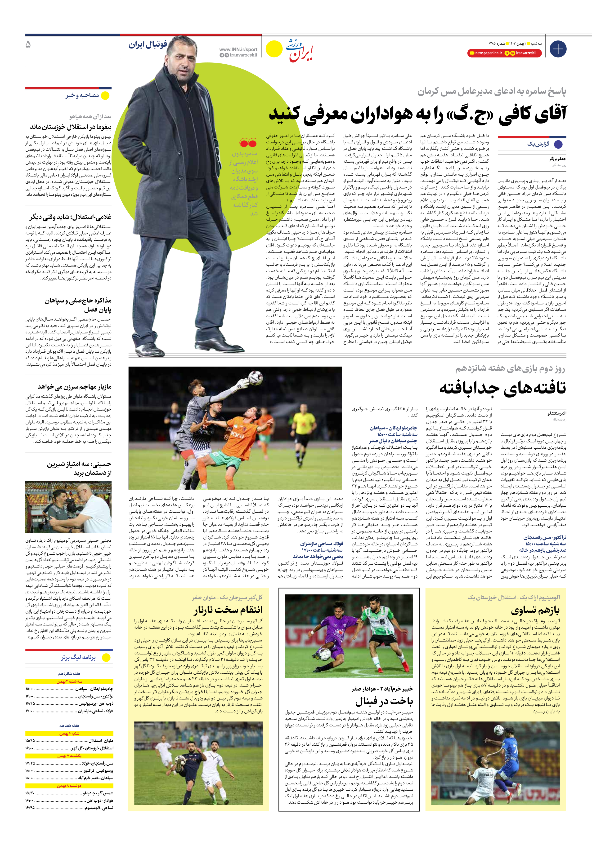 روزنامه ایران ورزشی - شماره هفت هزار و هفتصد و پنجاه - ۰۲ بهمن ۱۴۰۳ - صفحه ۵