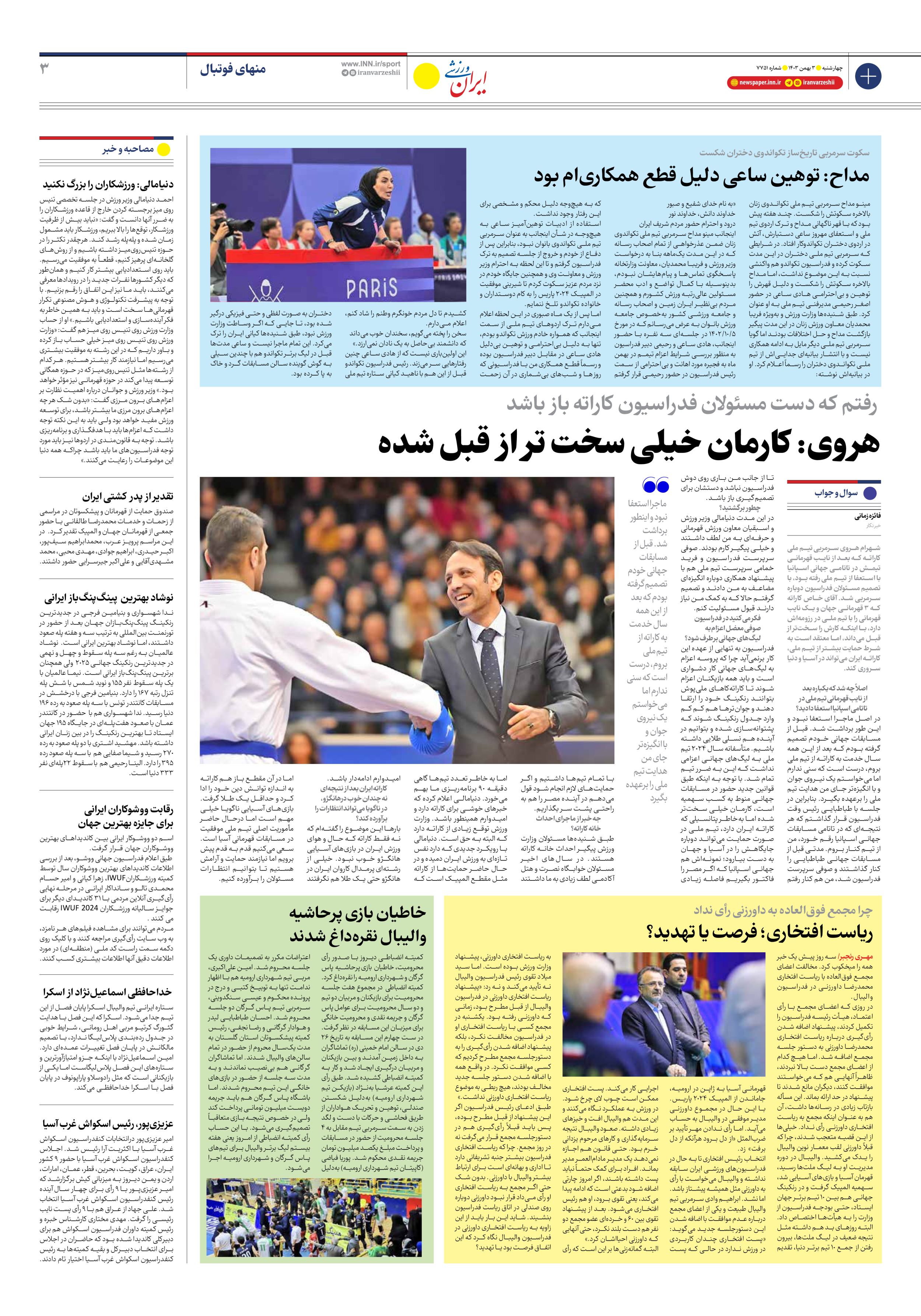 روزنامه ایران ورزشی - شماره هفت هزار و هفتصد و پنجاه و یک - ۰۳ بهمن ۱۴۰۳ - صفحه ۳