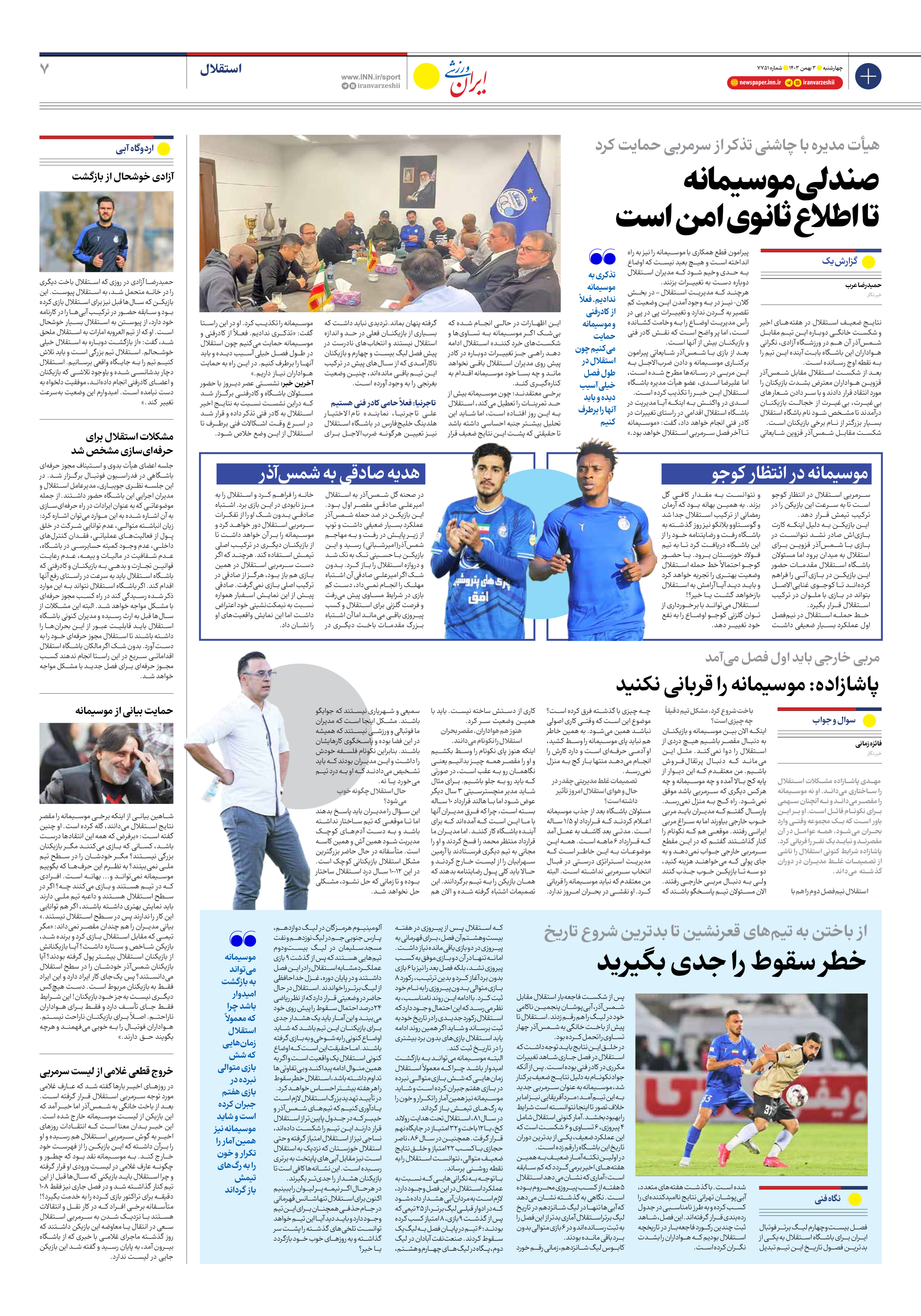 روزنامه ایران ورزشی - شماره هفت هزار و هفتصد و پنجاه و یک - ۰۳ بهمن ۱۴۰۳ - صفحه ۷