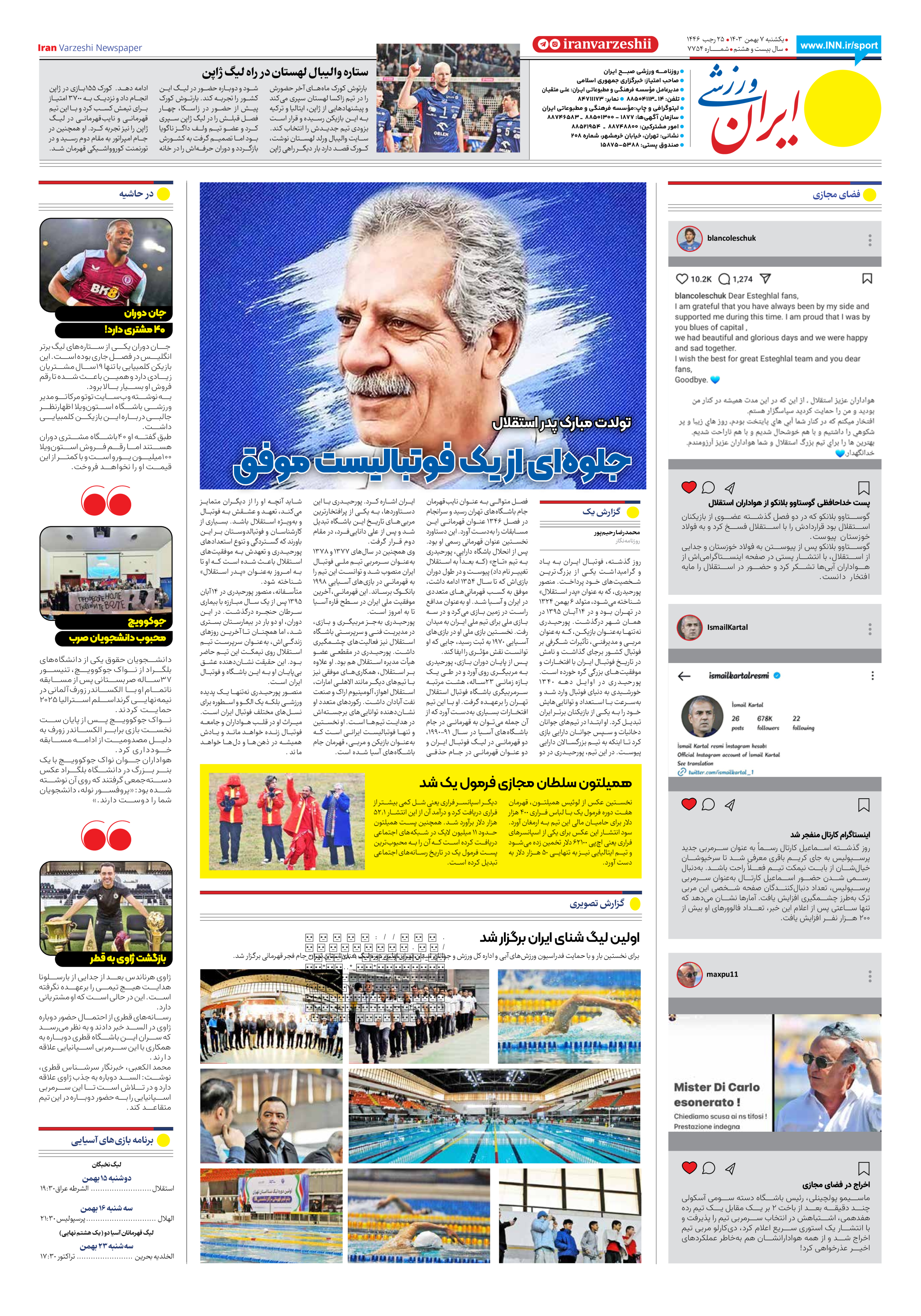 شماره هفت هزار و هفتصد و پنجاه و چهار - ۰۷ بهمن ۱۴۰۳