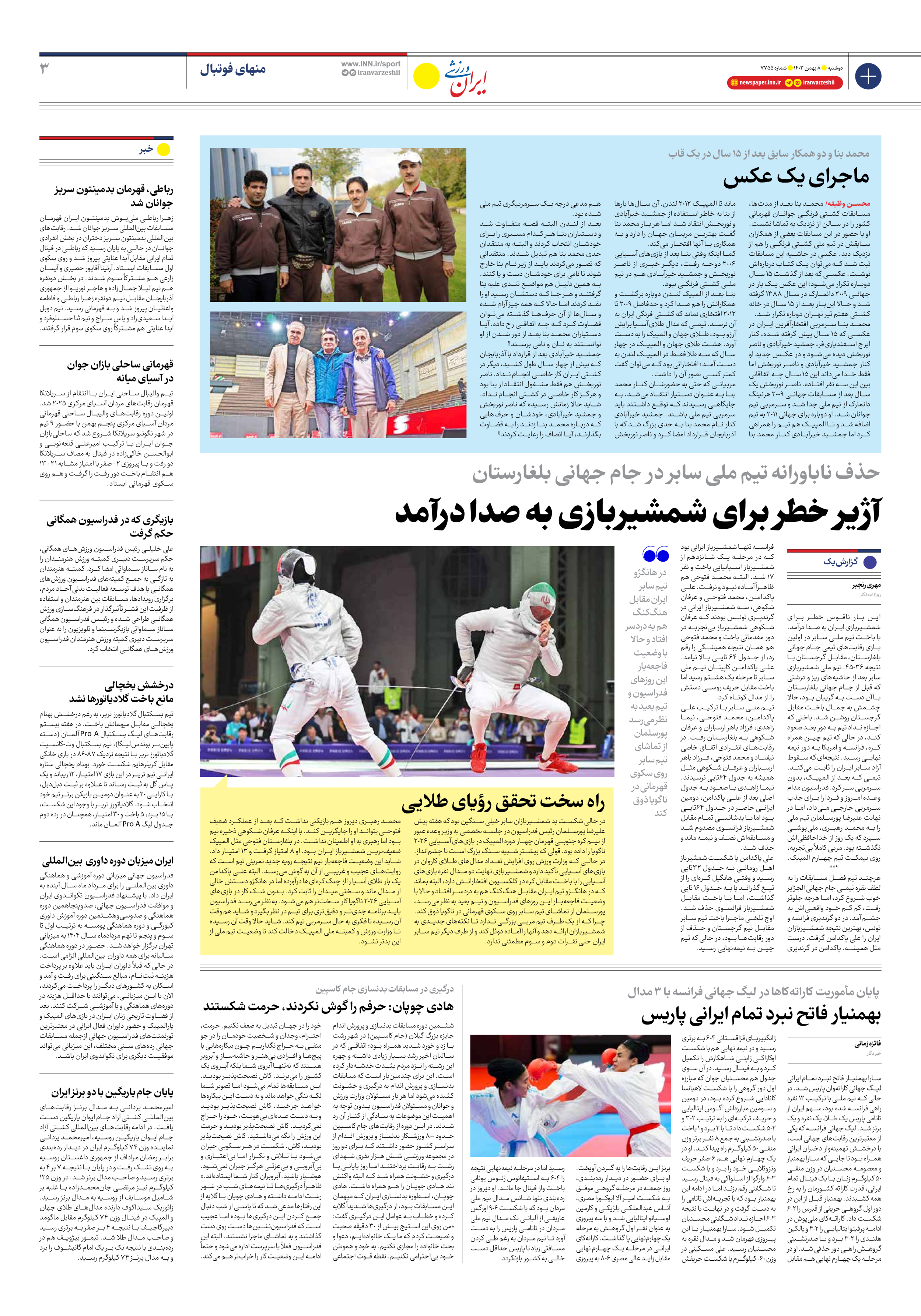 روزنامه ایران ورزشی - شماره هفت هزار و هفتصد و پنجاه و پنج - ۰۸ بهمن ۱۴۰۳ - صفحه ۳