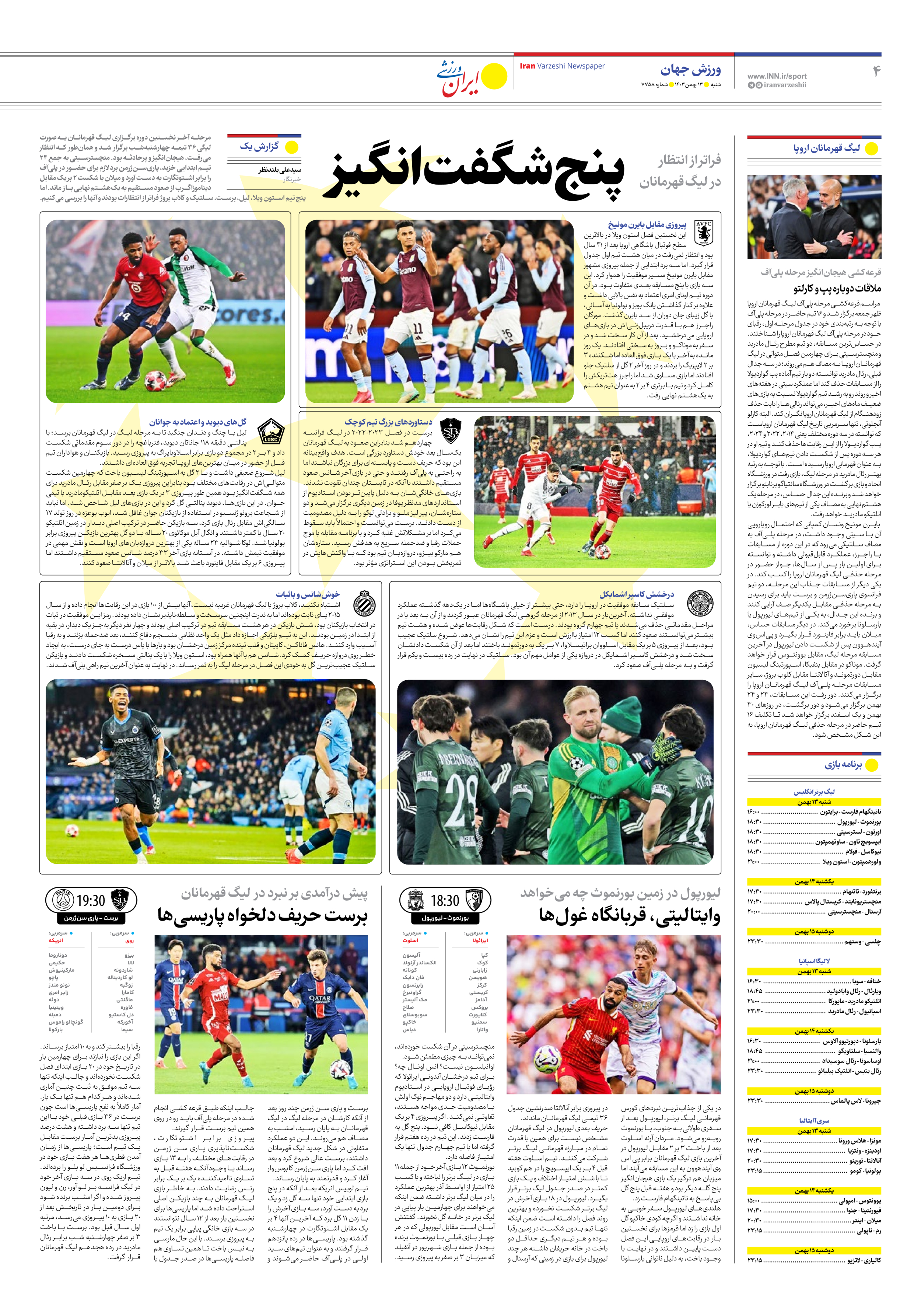روزنامه ایران ورزشی - شماره هفت هزار و هفتصد و پنجاه و هشت - ۱۳ بهمن ۱۴۰۳ - صفحه ۴