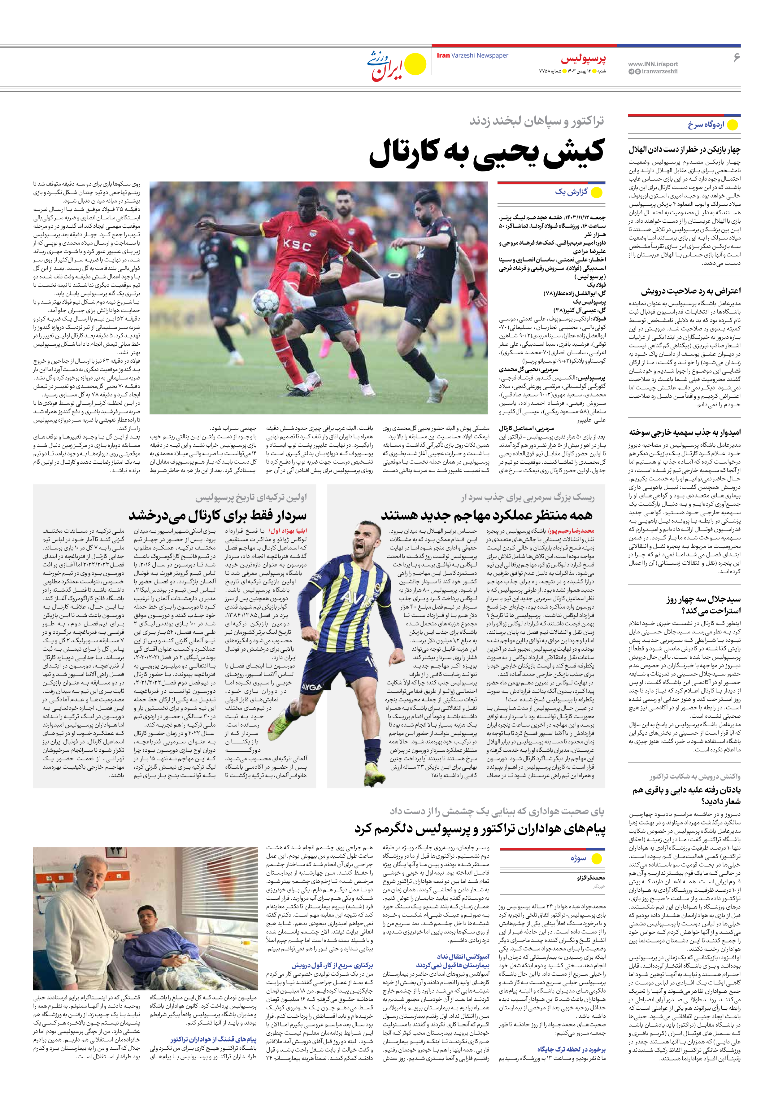روزنامه ایران ورزشی - شماره هفت هزار و هفتصد و پنجاه و هشت - ۱۳ بهمن ۱۴۰۳ - صفحه ۶
