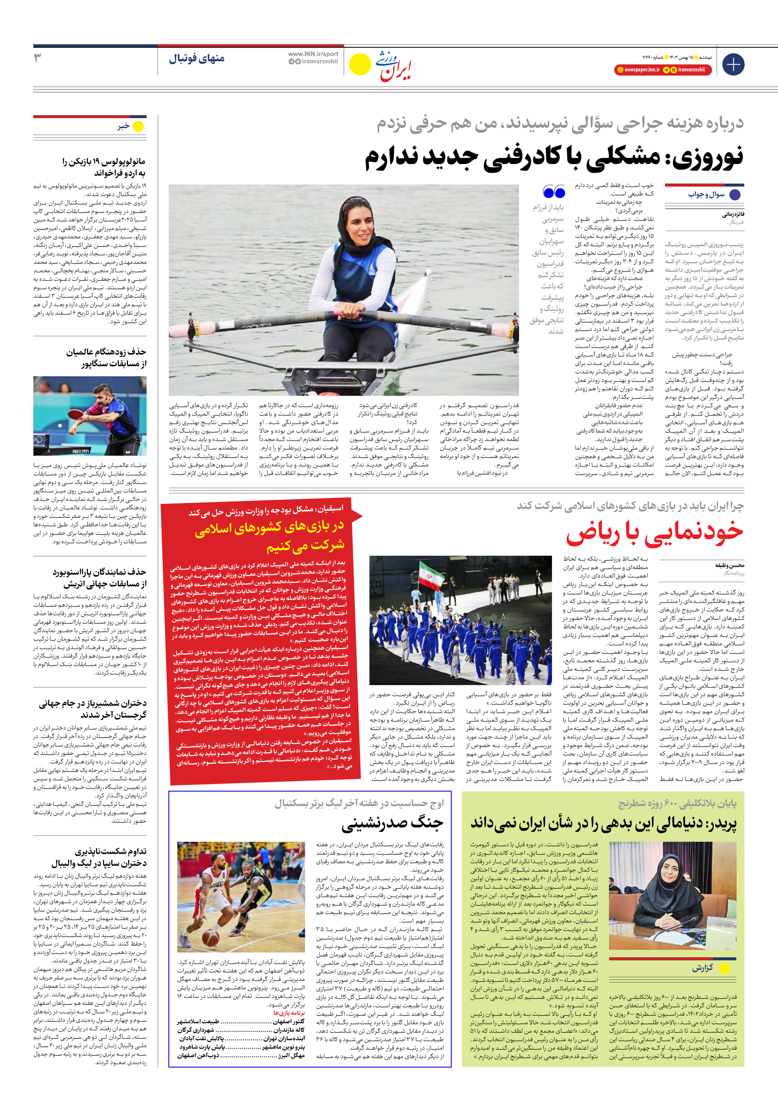 روزنامه ایران ورزشی - شماره هفت هزار و هفتصد و شصت - ۱۵ بهمن ۱۴۰۳ - صفحه ۳