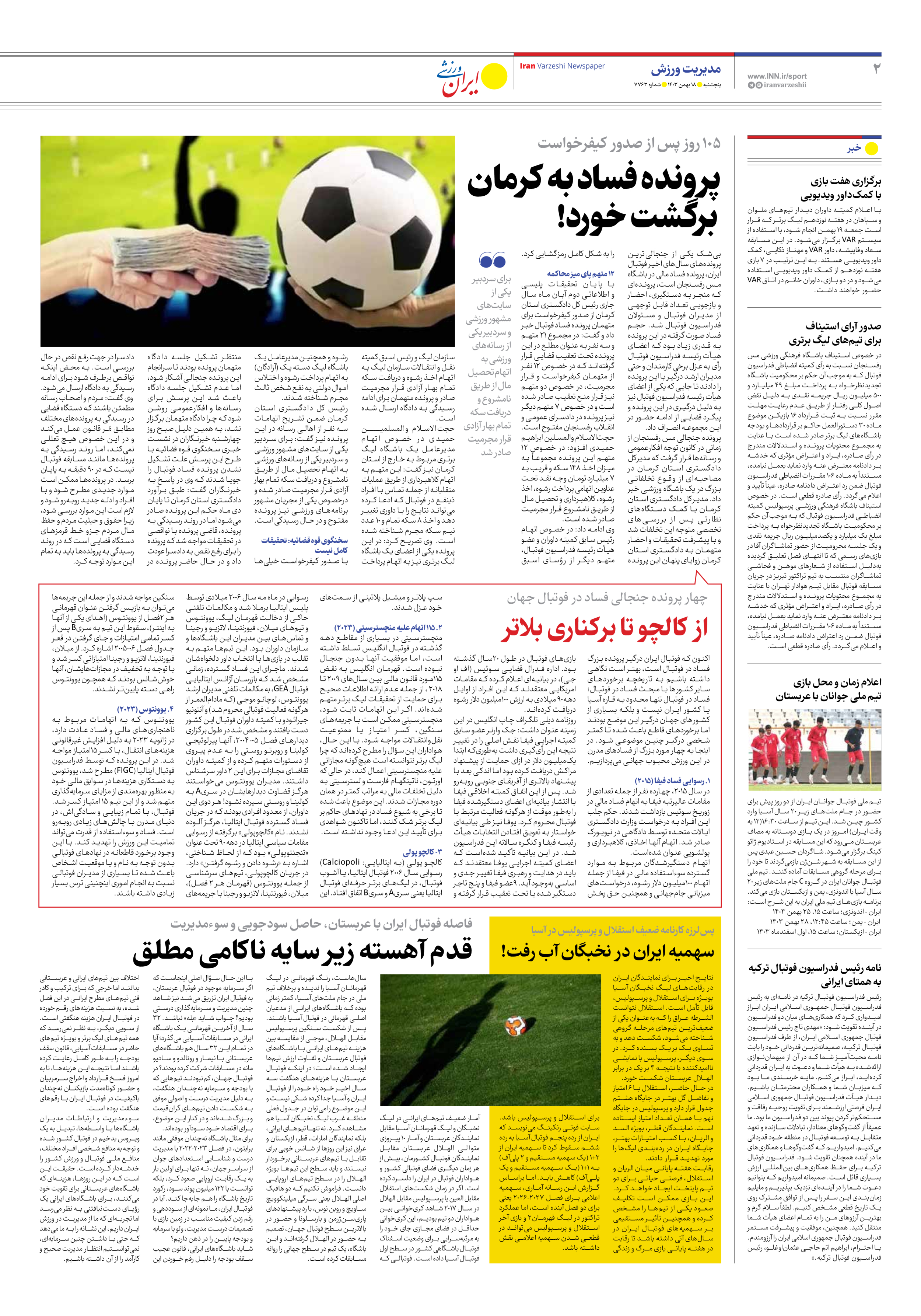 روزنامه ایران ورزشی - شماره هفت هزار و هفتصد و شصت و سه - ۱۸ بهمن ۱۴۰۳ - صفحه ۲