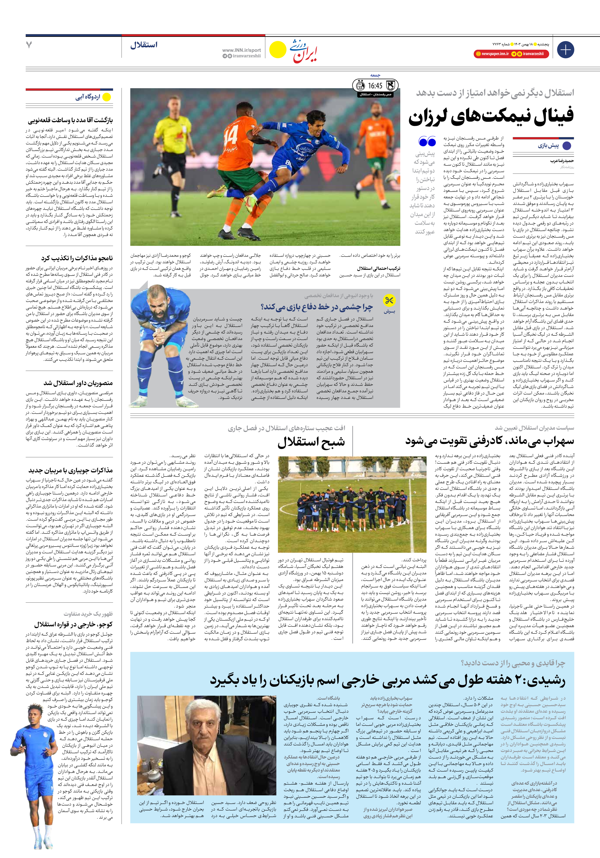 روزنامه ایران ورزشی - شماره هفت هزار و هفتصد و شصت و سه - ۱۸ بهمن ۱۴۰۳ - صفحه ۷