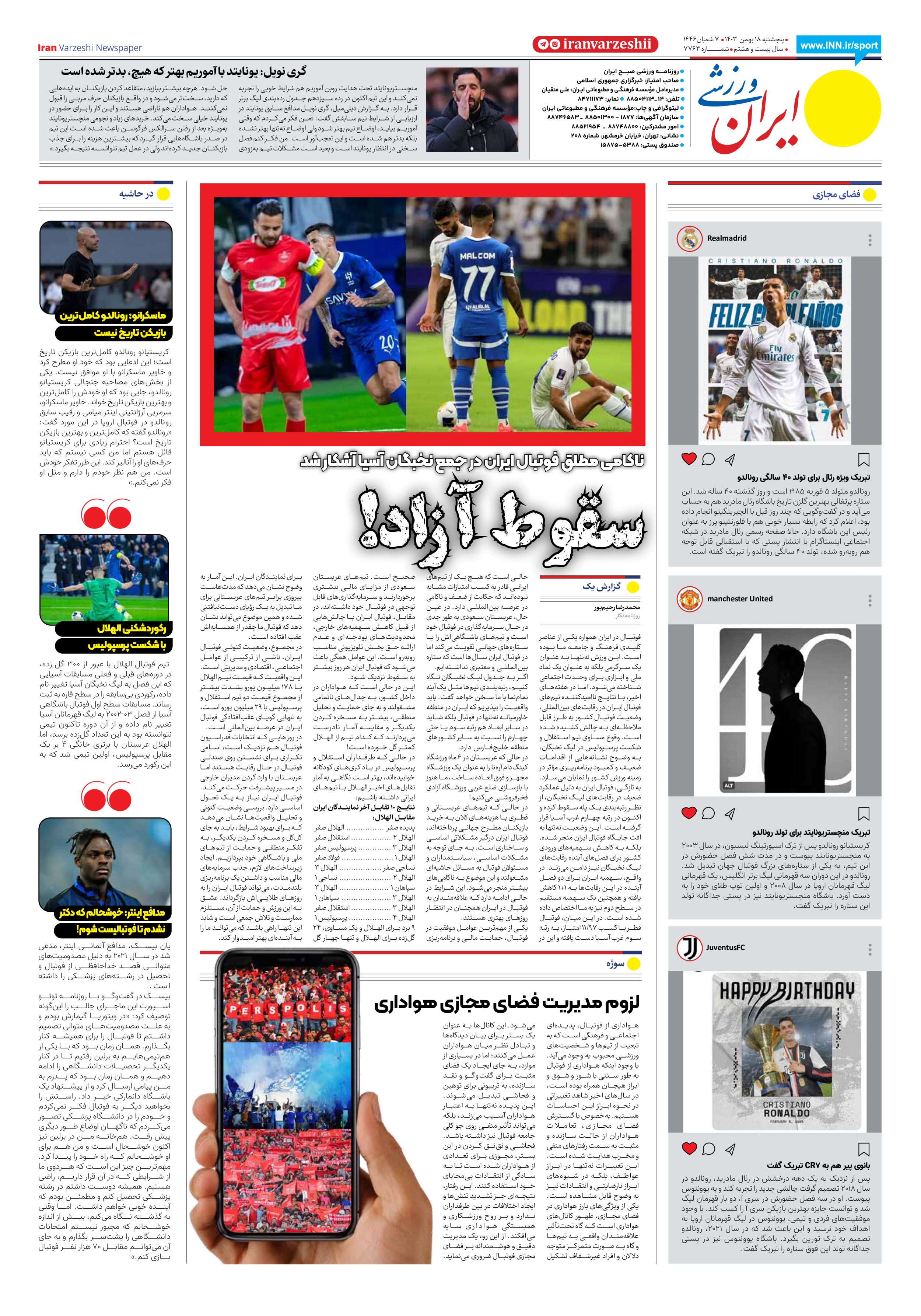 شماره هفت هزار و هفتصد و شصت و سه - ۱۸ بهمن ۱۴۰۳