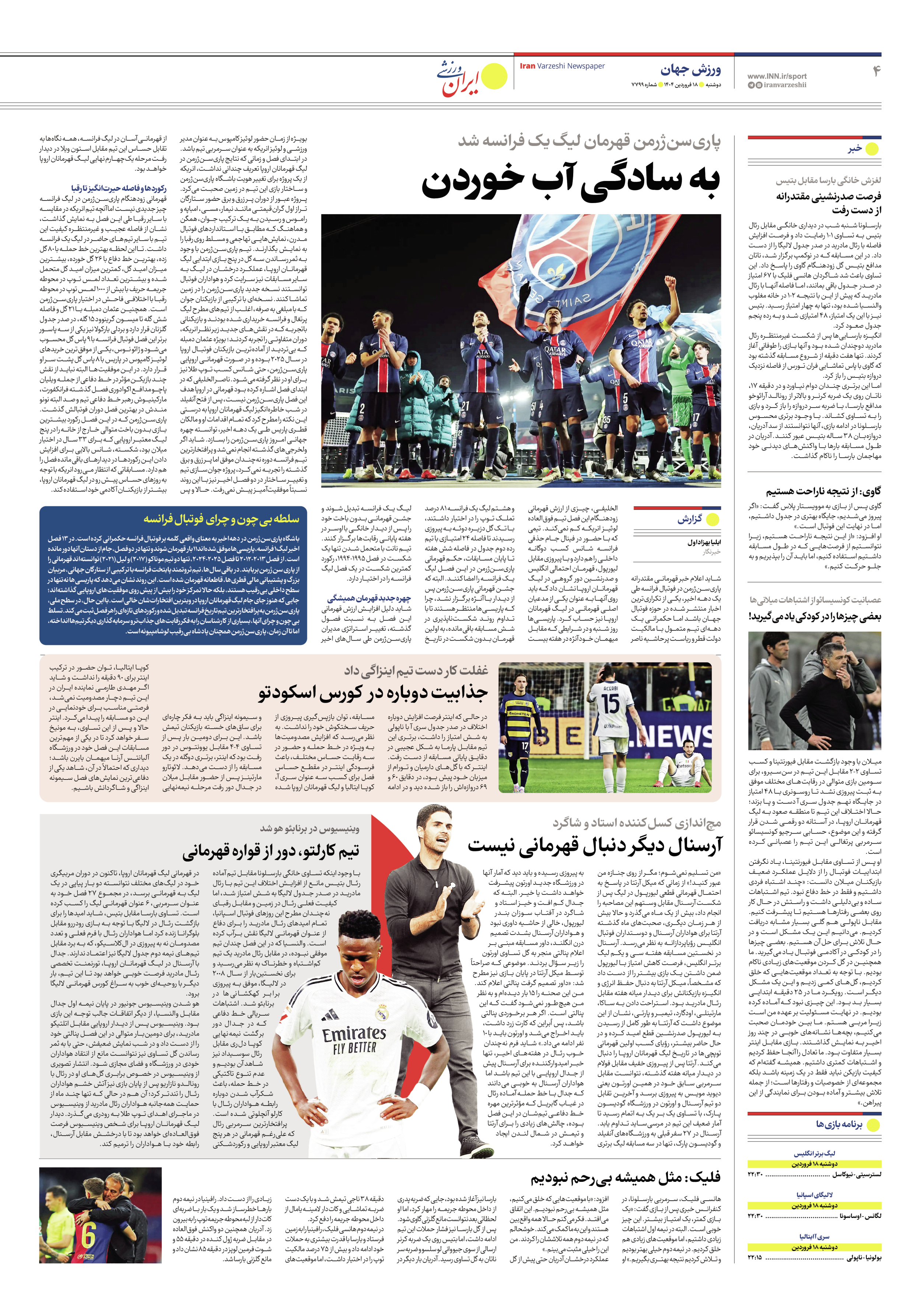 روزنامه ایران ورزشی - شماره هفت هزار و هفتصد و نود و نه - ۱۸ فروردین ۱۴۰۴ - صفحه ۴