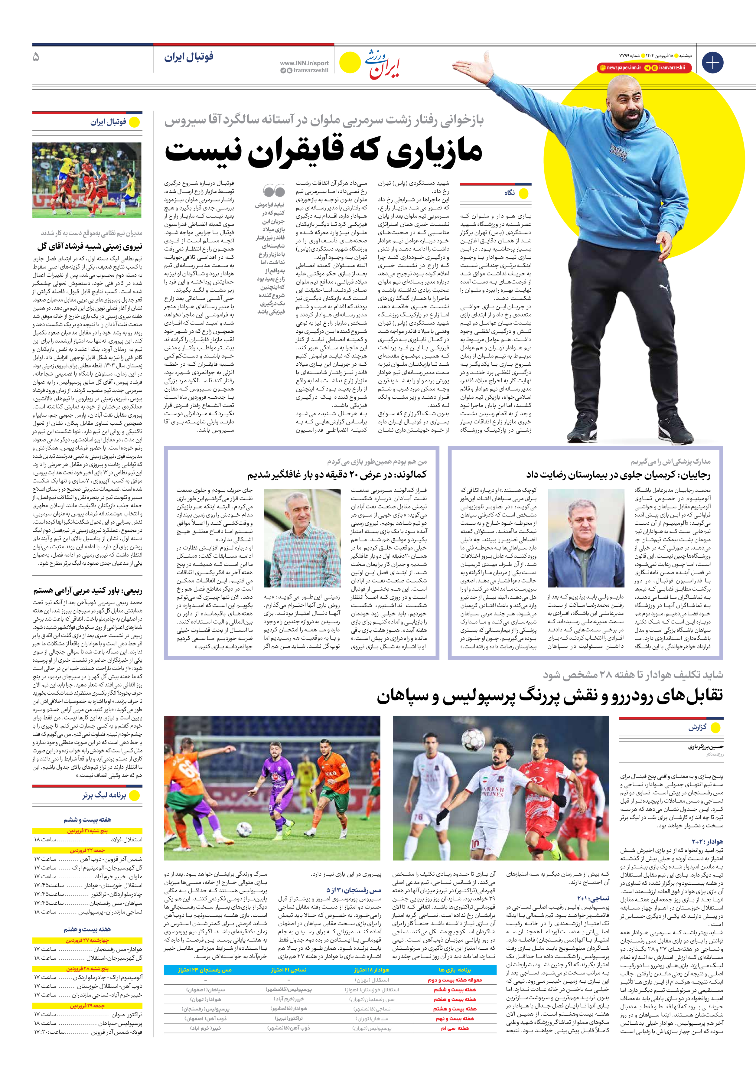 روزنامه ایران ورزشی - شماره هفت هزار و هفتصد و نود و نه - ۱۸ فروردین ۱۴۰۴ - صفحه ۵