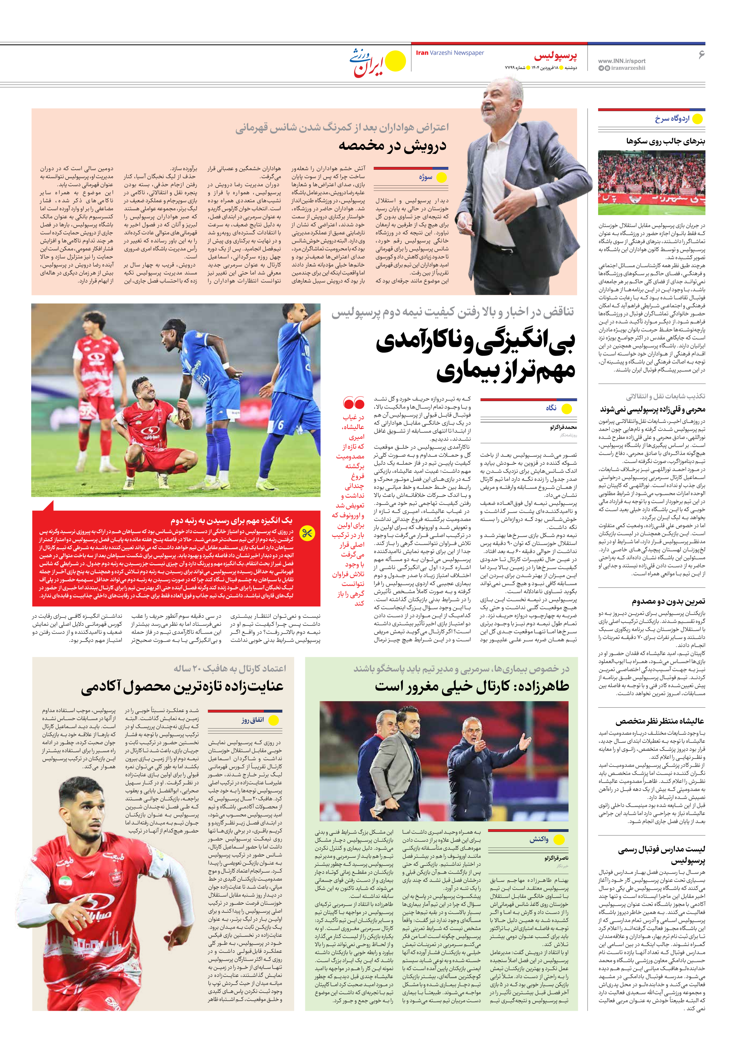 روزنامه ایران ورزشی - شماره هفت هزار و هفتصد و نود و نه - ۱۸ فروردین ۱۴۰۴ - صفحه ۶