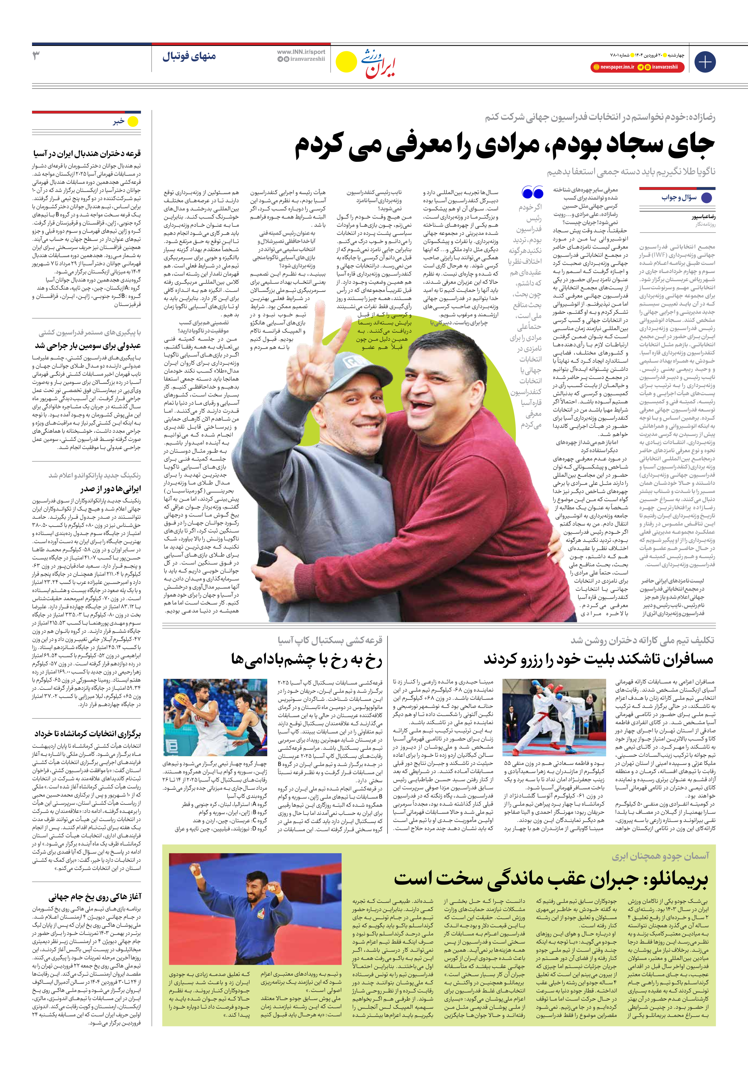 روزنامه ایران ورزشی - شماره هفت هزار و هشتصد و یک - ۲۰ فروردین ۱۴۰۴ - صفحه ۳