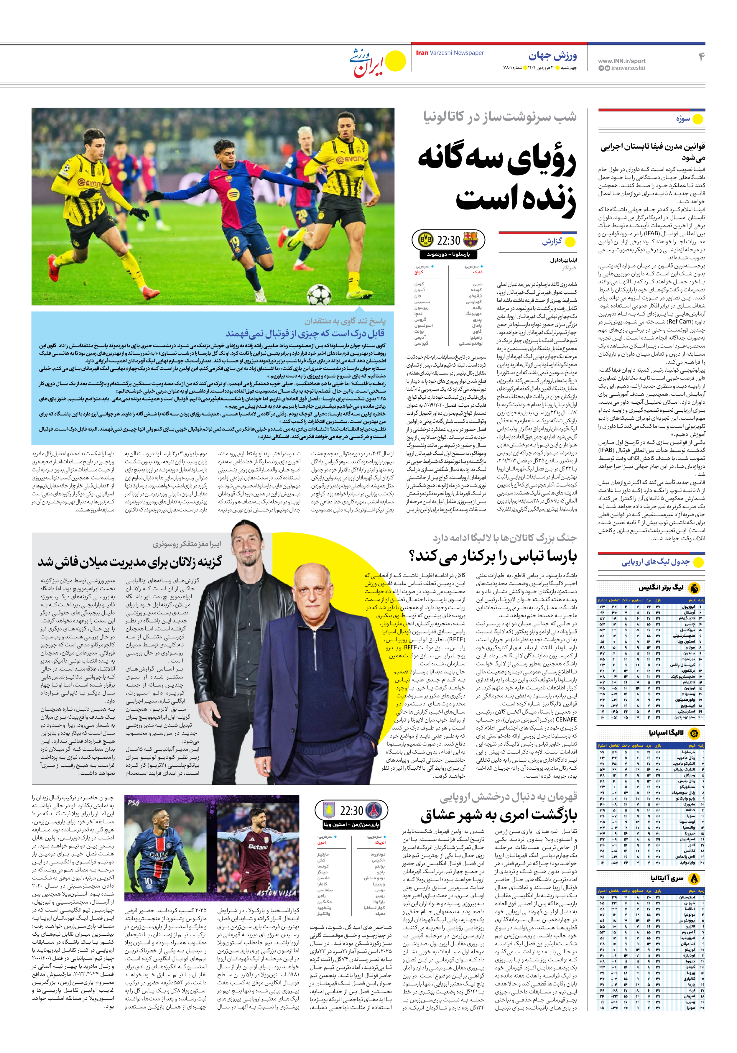 روزنامه ایران ورزشی - شماره هفت هزار و هشتصد و یک - ۲۰ فروردین ۱۴۰۴ - صفحه ۴