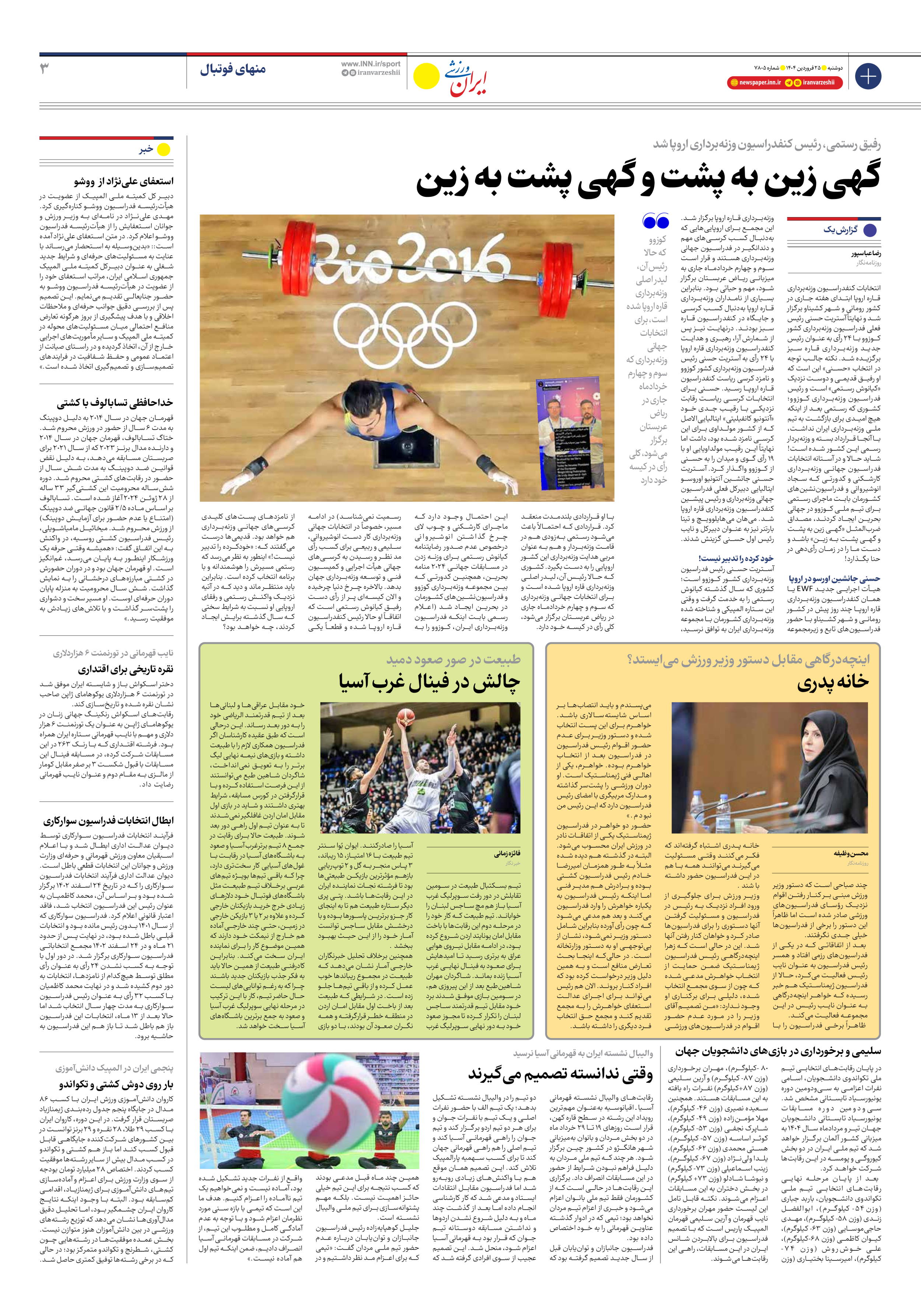 روزنامه ایران ورزشی - شماره هفت هزار و هشتصد و پنج - ۲۵ فروردین ۱۴۰۴ - صفحه ۳