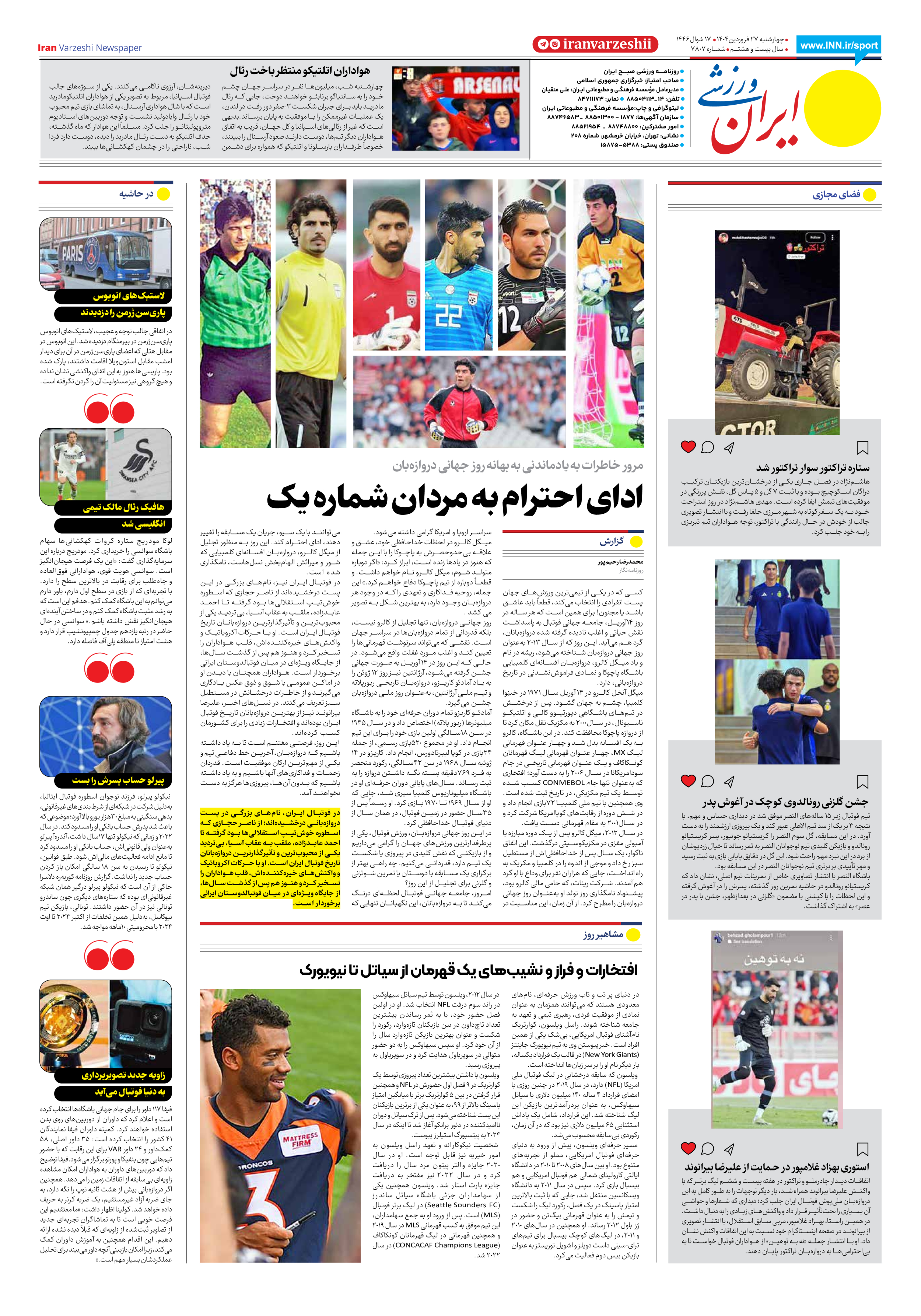 روزنامه ایران ورزشی - شماره هفت هزار و هشتصد و هفت - ۲۷ فروردین ۱۴۰۴ - صفحه ۸