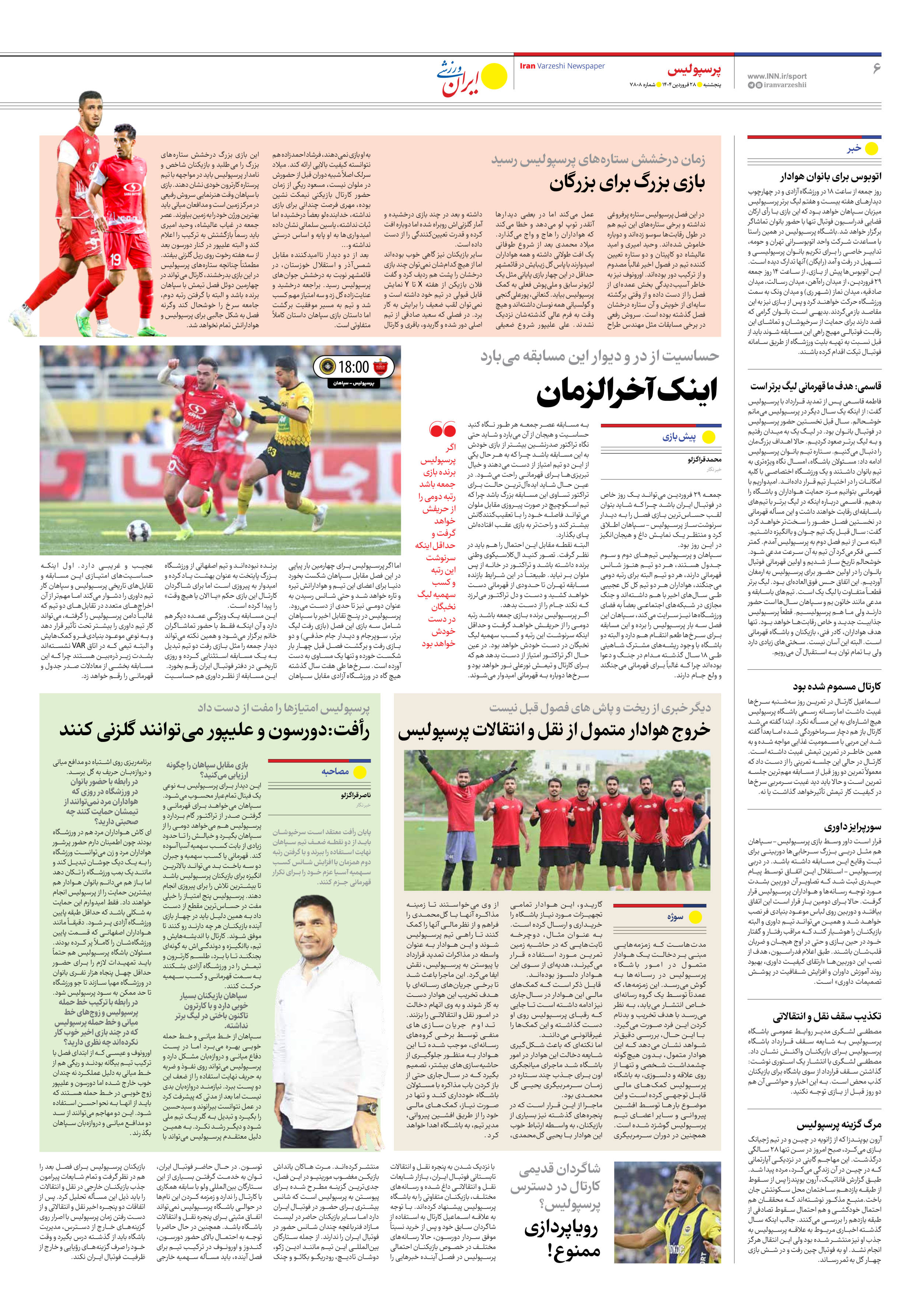 روزنامه ایران ورزشی - شماره هفت هزار و هشتصد و هشت - ۲۸ فروردین ۱۴۰۴ - صفحه ۶