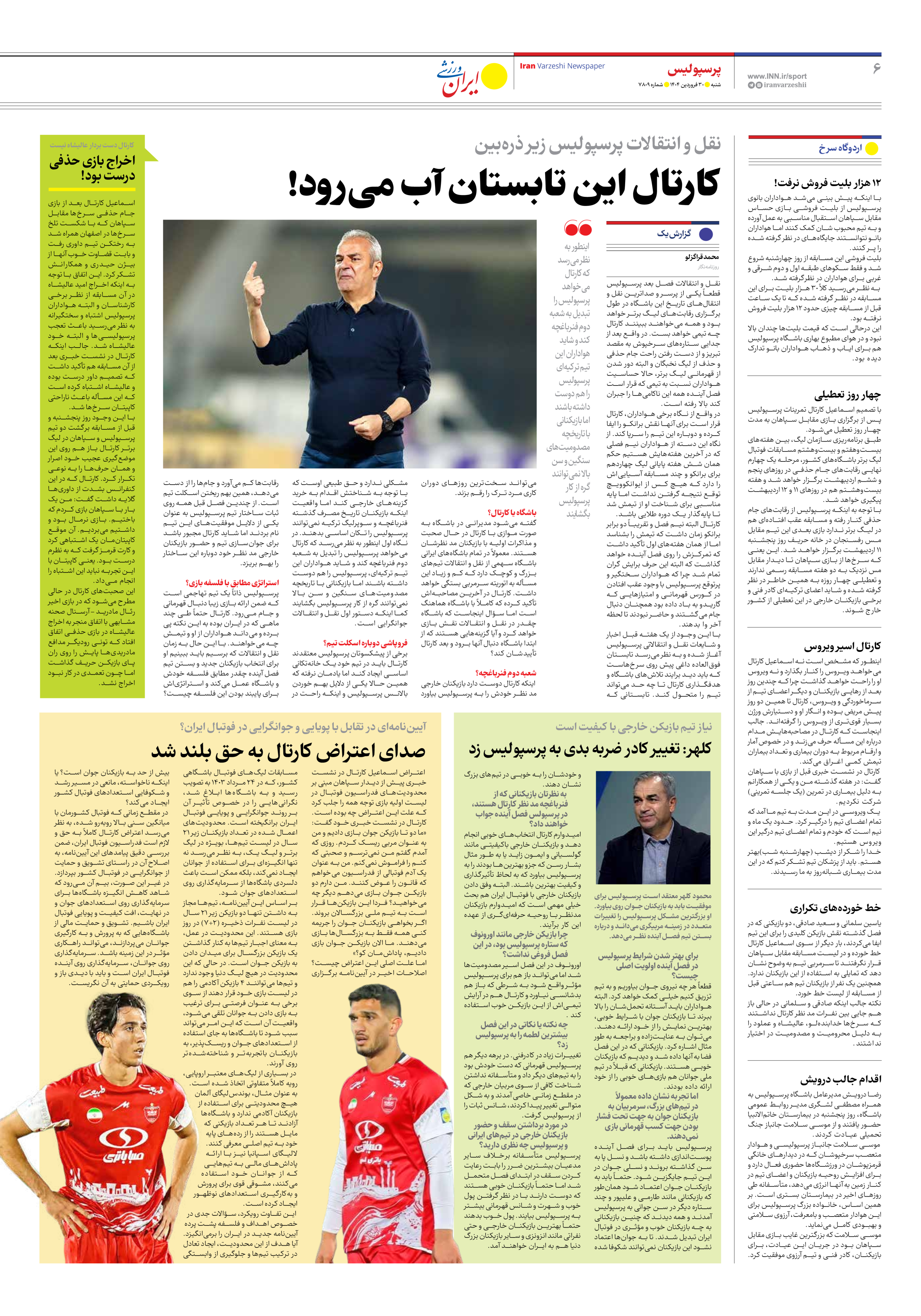 روزنامه ایران ورزشی - شماره هفت هزار و هشتصد و نه - ۳۰ فروردین ۱۴۰۴ - صفحه ۶