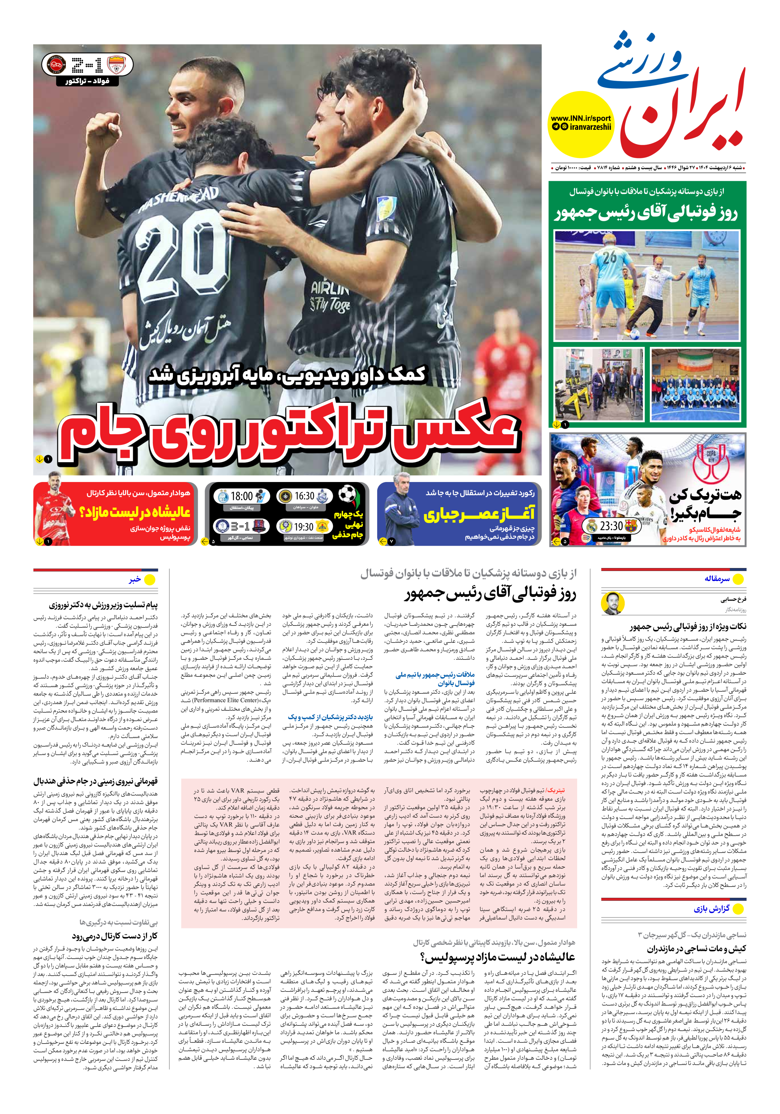 روزنامه ایران ورزشی - شماره هفت هزار و هشتصد و چهارده - ۰۶ اردیبهشت ۱۴۰۴