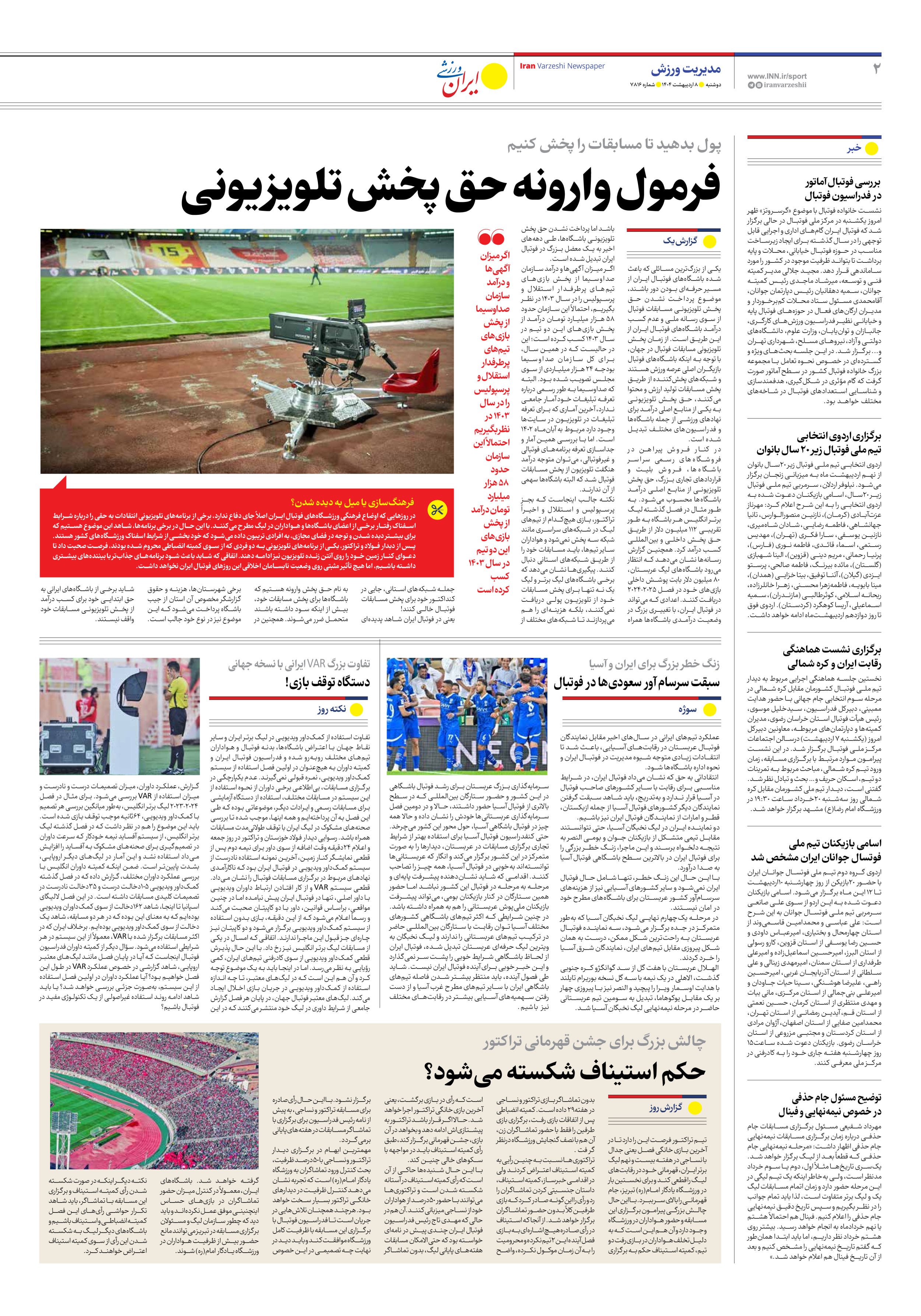 روزنامه ایران ورزشی - شماره هفت هزار و هشتصد و شانزده - ۰۸ اردیبهشت ۱۴۰۴ - صفحه ۲