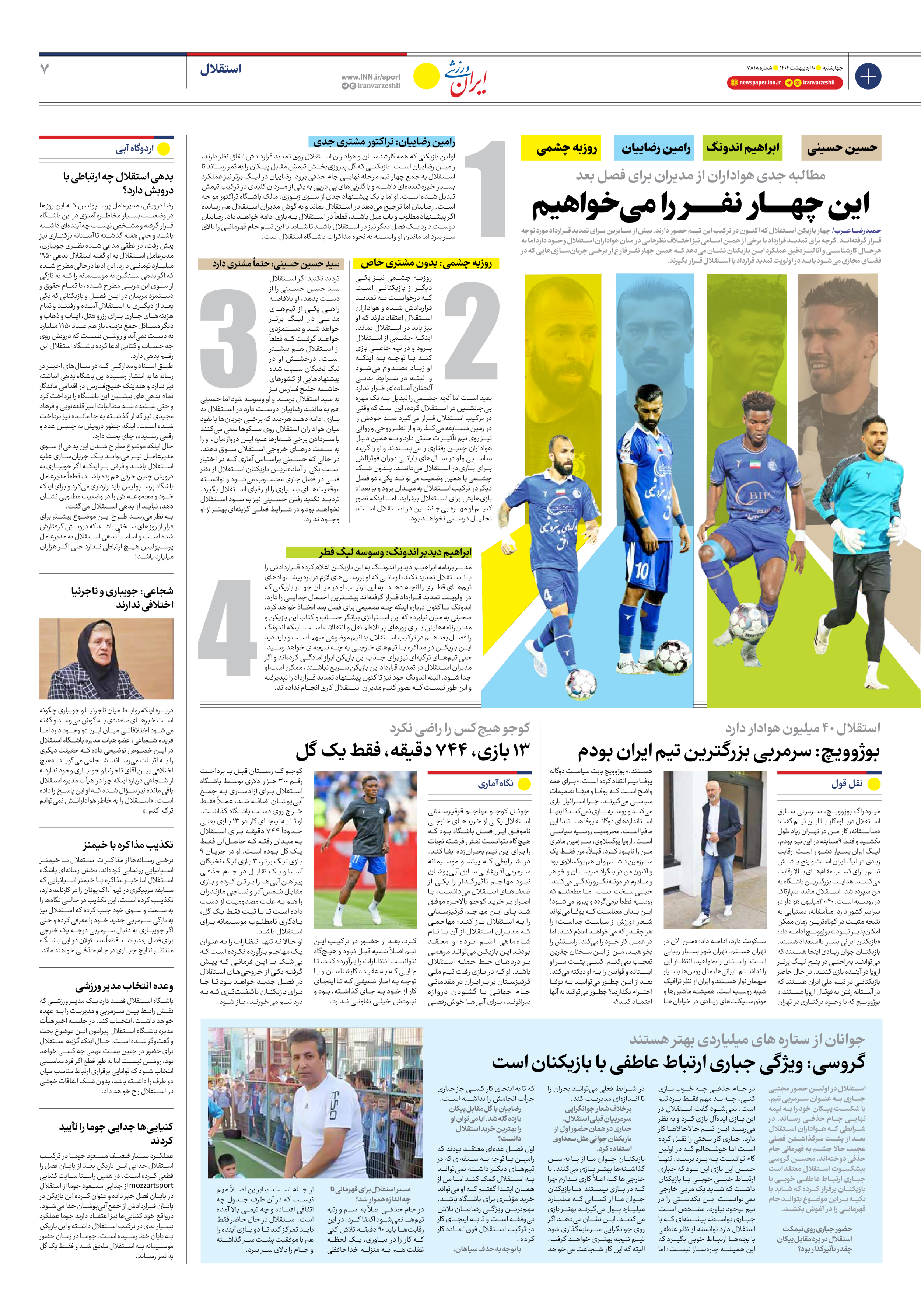 روزنامه ایران ورزشی - شماره هفت هزار و هشتصد و هجده - ۱۰ اردیبهشت ۱۴۰۴ - صفحه ۷