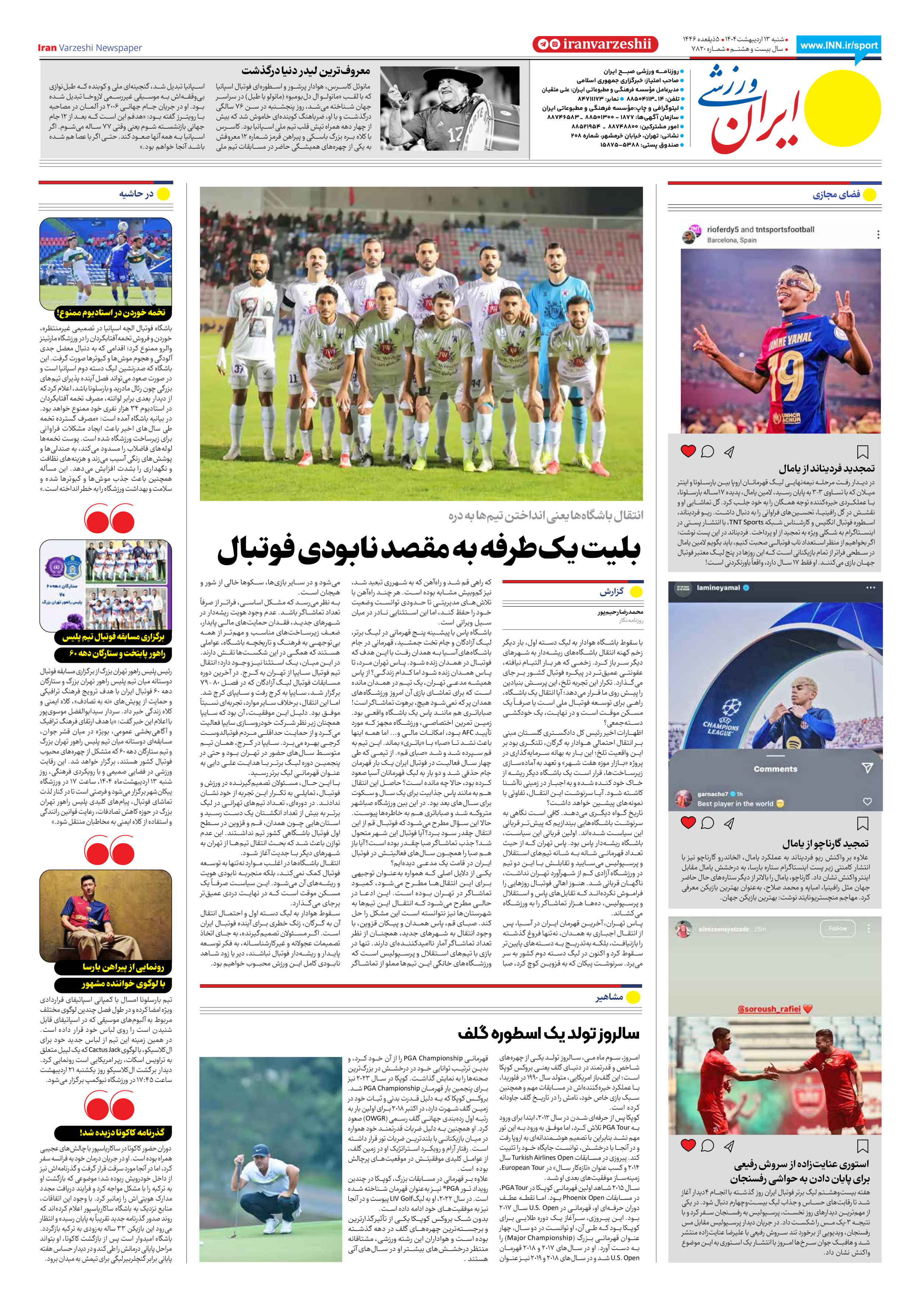 روزنامه ایران ورزشی - شماره هفت هزار و هشتصد و بیست - ۱۳ اردیبهشت ۱۴۰۴ - صفحه ۸