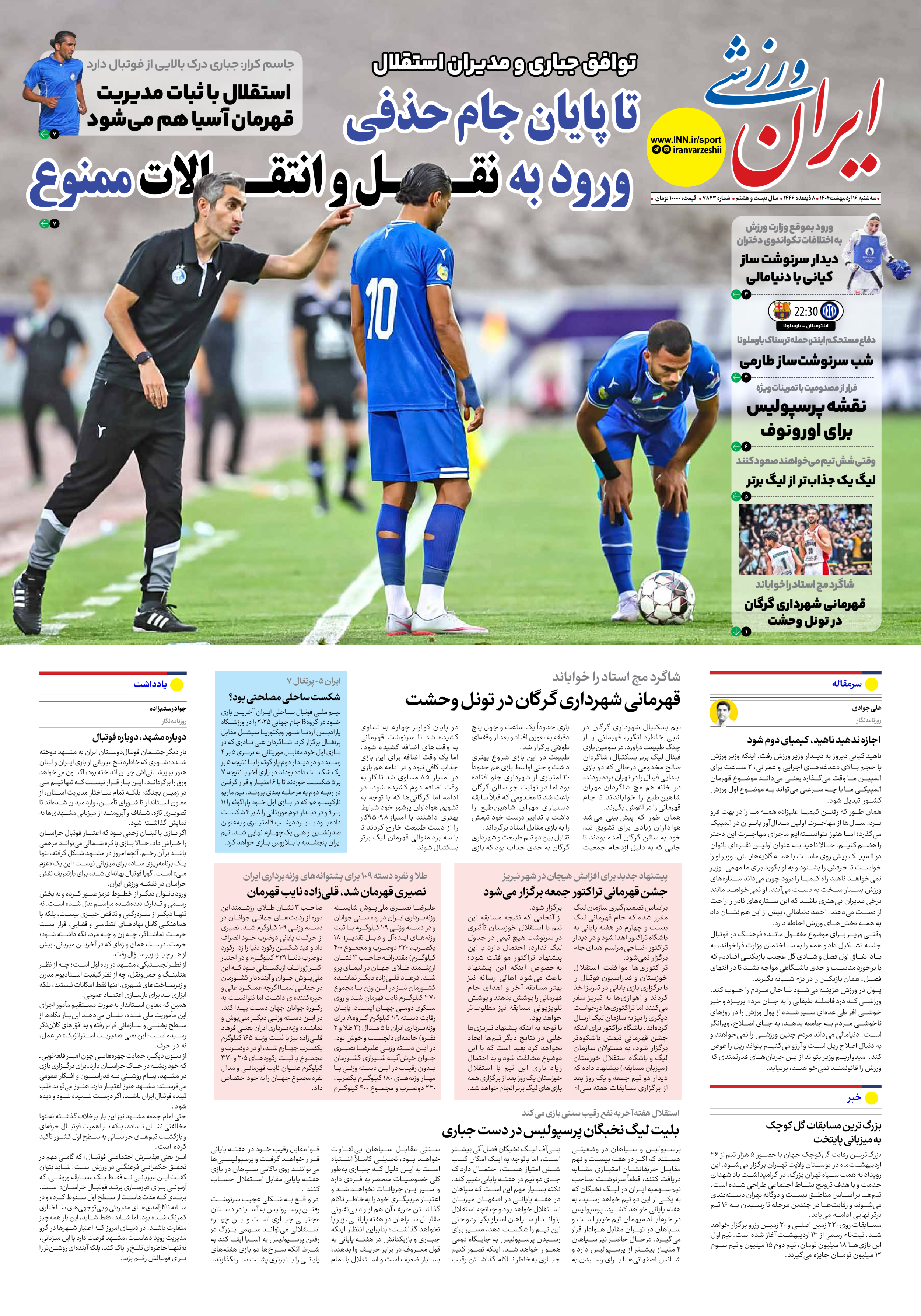 روزنامه ایران ورزشی - شماره هفت هزار و هشتصد و بیست و سه - ۱۶ اردیبهشت ۱۴۰۴