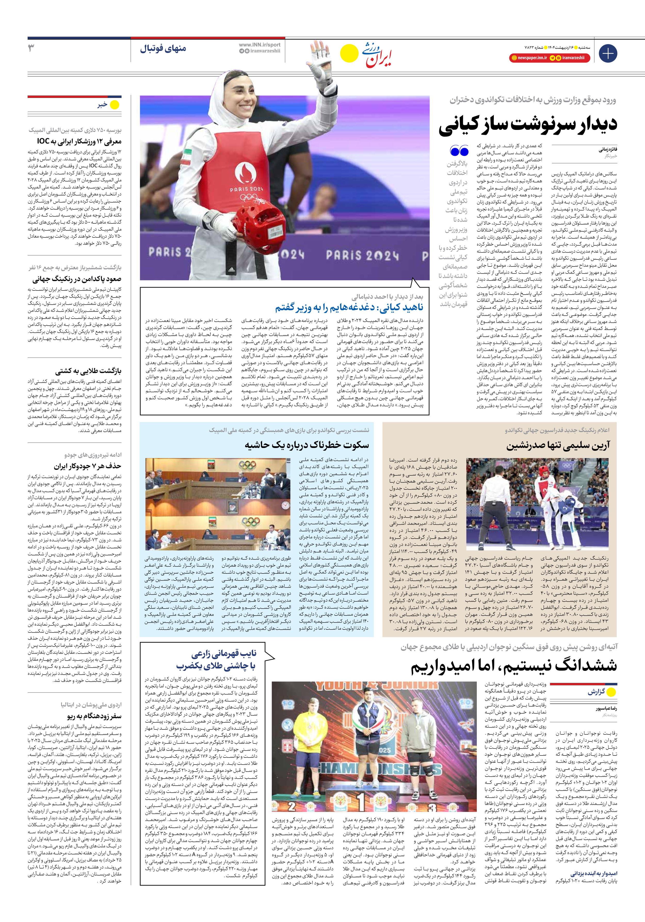 روزنامه ایران ورزشی - شماره هفت هزار و هشتصد و بیست و سه - ۱۶ اردیبهشت ۱۴۰۴ - صفحه ۳
