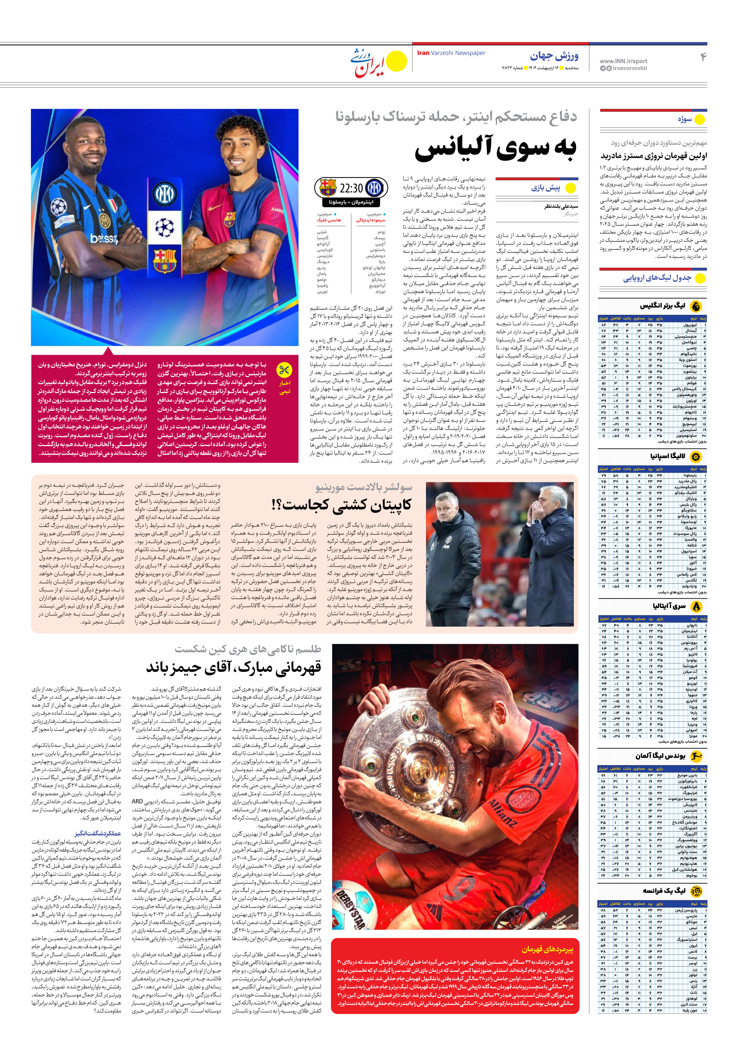 روزنامه ایران ورزشی - شماره هفت هزار و هشتصد و بیست و سه - ۱۶ اردیبهشت ۱۴۰۴ - صفحه ۴