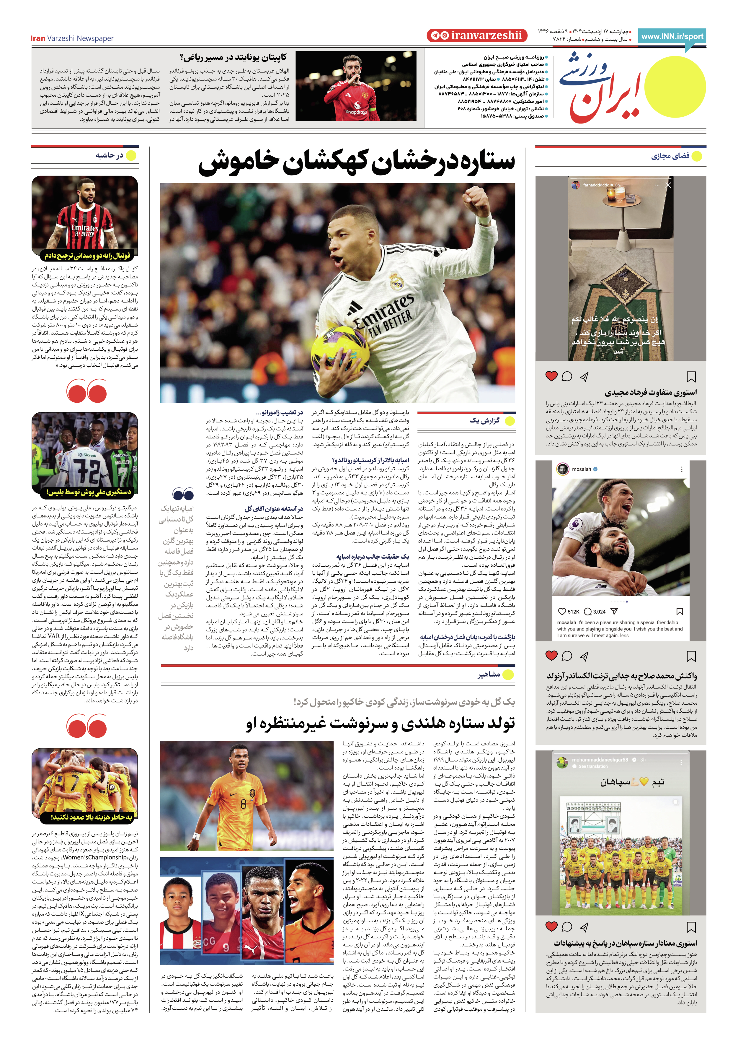 شماره هفت هزار و هشتصد و بیست و چهار - ۱۷ اردیبهشت ۱۴۰۴