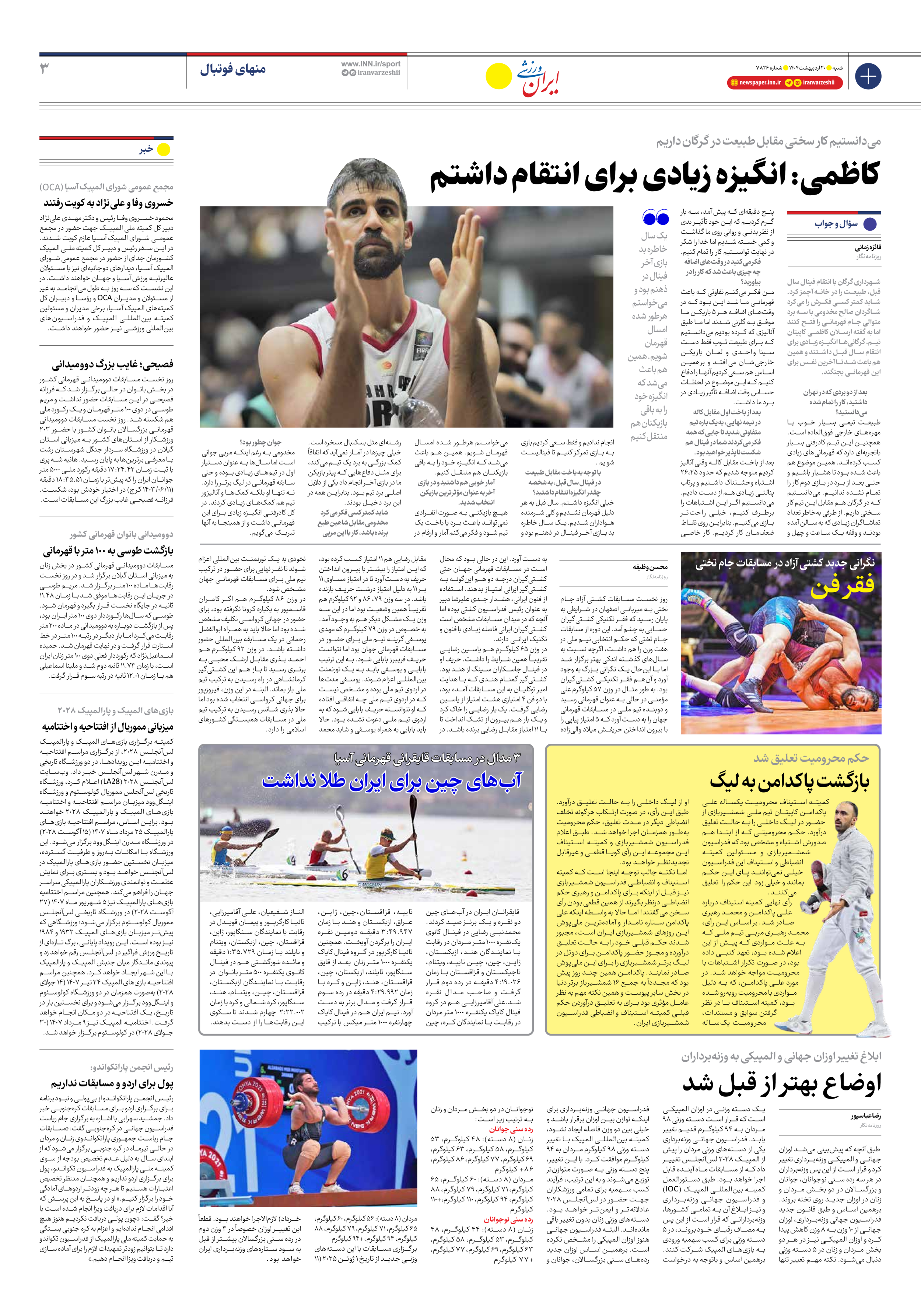 روزنامه ایران ورزشی - شماره هفت هزار و هشتصد و بیست و شش - ۲۰ اردیبهشت ۱۴۰۴ - صفحه ۳