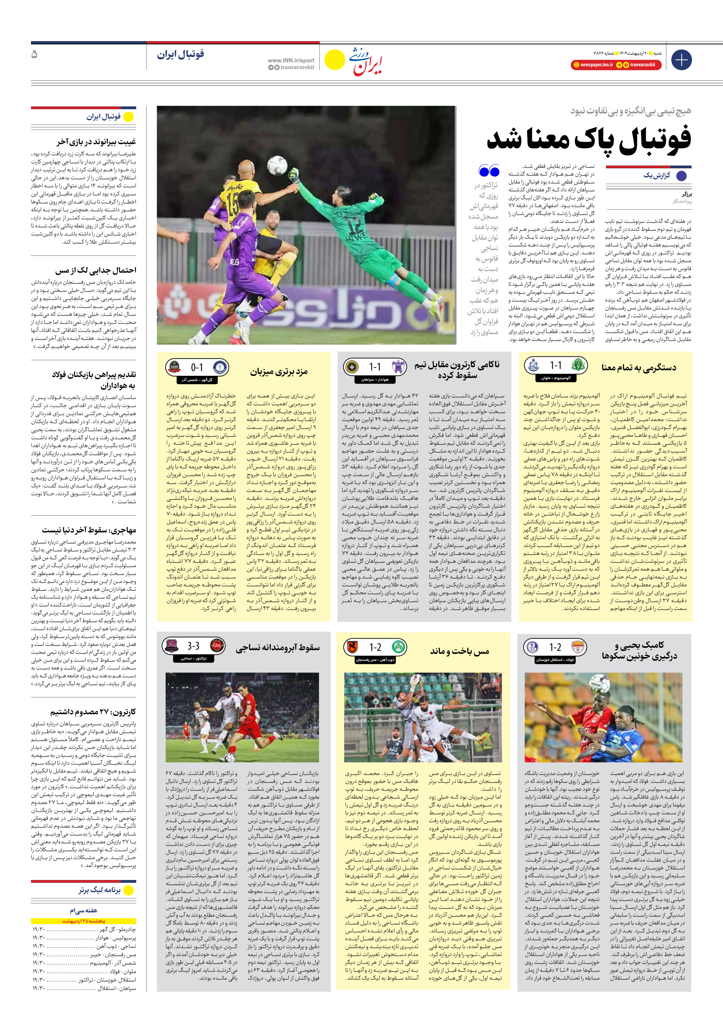 شماره هفت هزار و هشتصد و بیست و شش - ۲۰ اردیبهشت ۱۴۰۴