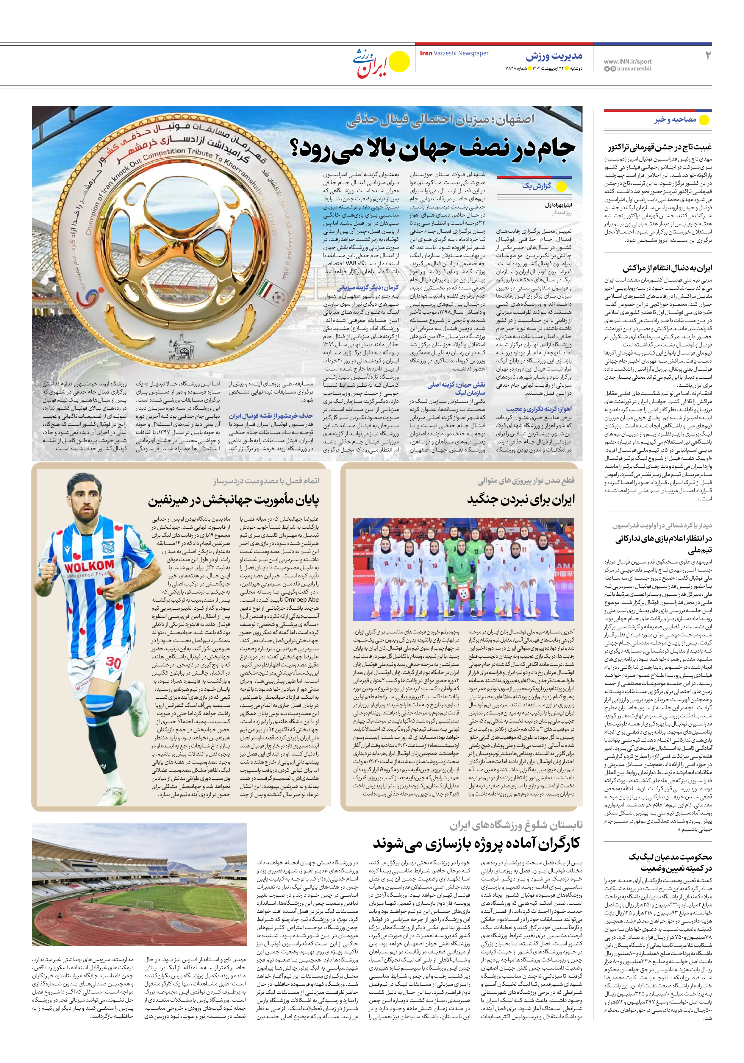 روزنامه ایران ورزشی - شماره هفت هزار و هشتصد و بیست و هشت - ۲۲ اردیبهشت ۱۴۰۴ - صفحه ۲