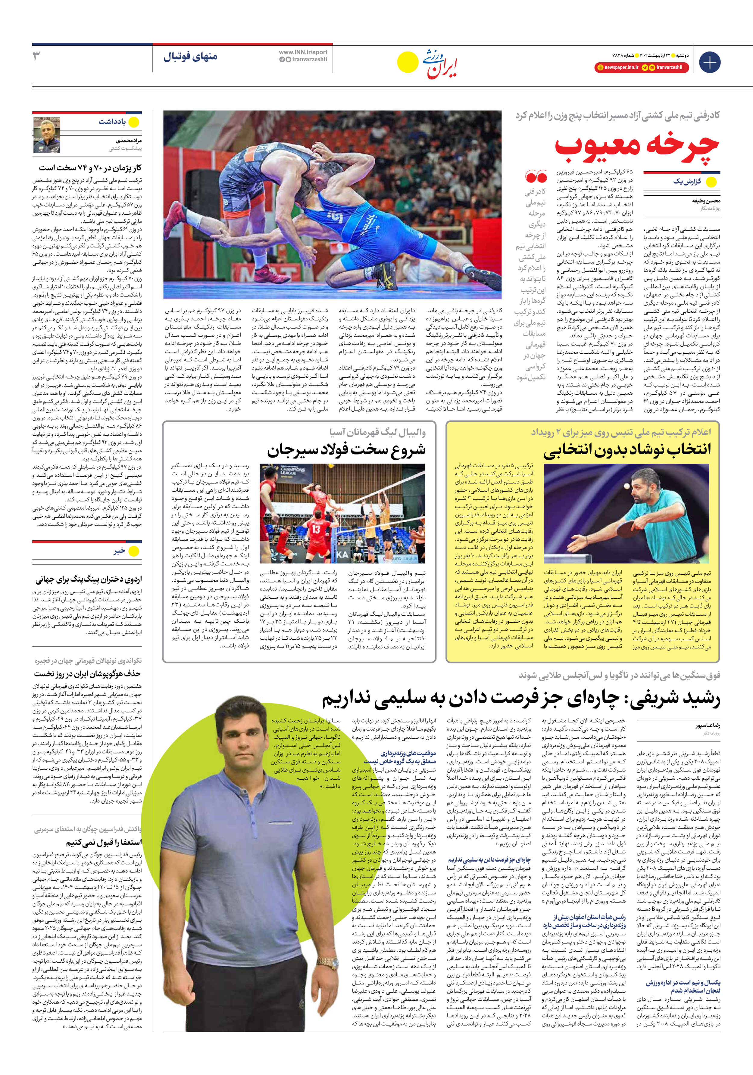 شماره هفت هزار و هشتصد و بیست و هشت - ۲۲ اردیبهشت ۱۴۰۴