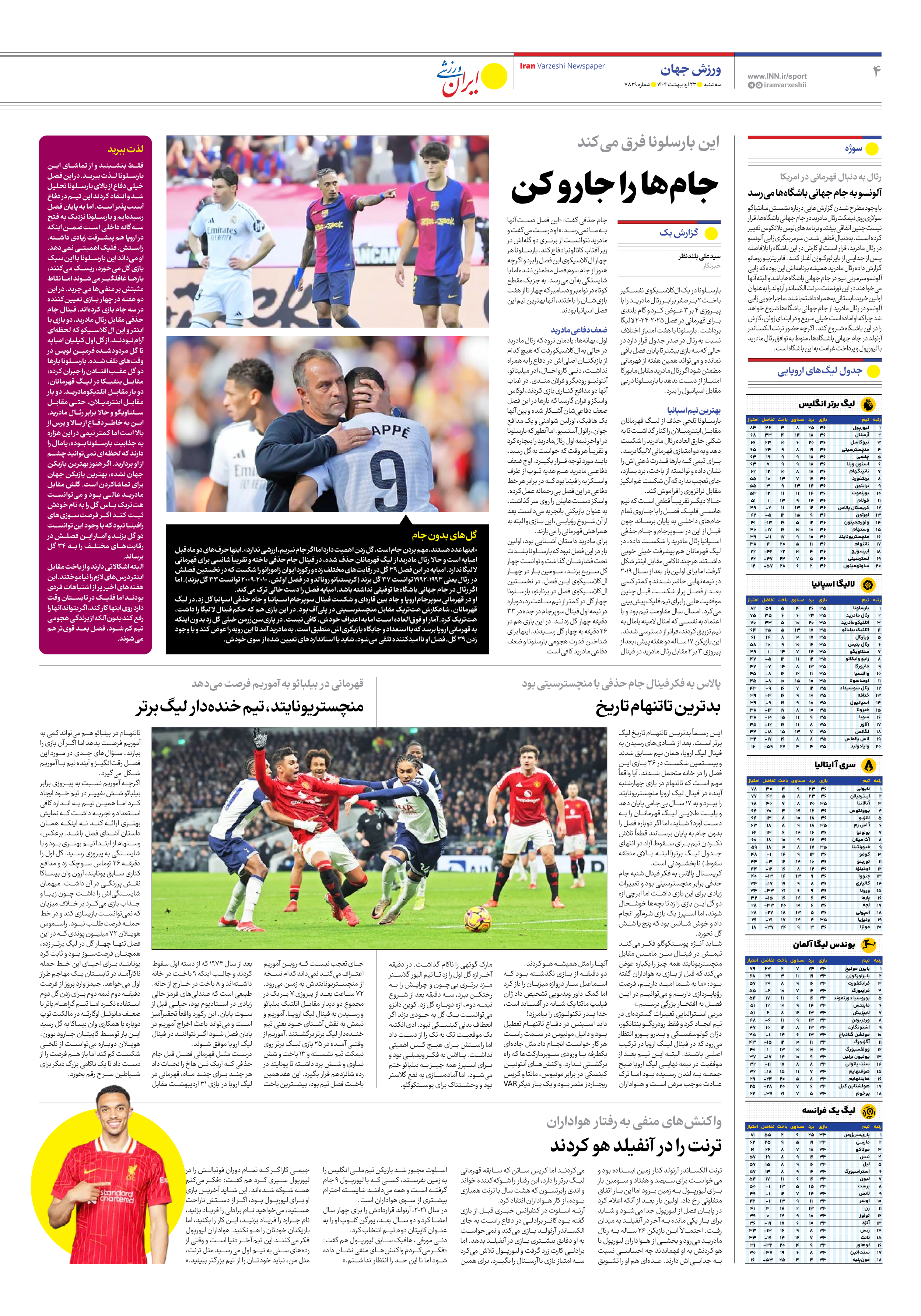 روزنامه ایران ورزشی - شماره هفت هزار و هشتصد و بیست و نه - ۲۳ اردیبهشت ۱۴۰۴ - صفحه ۴