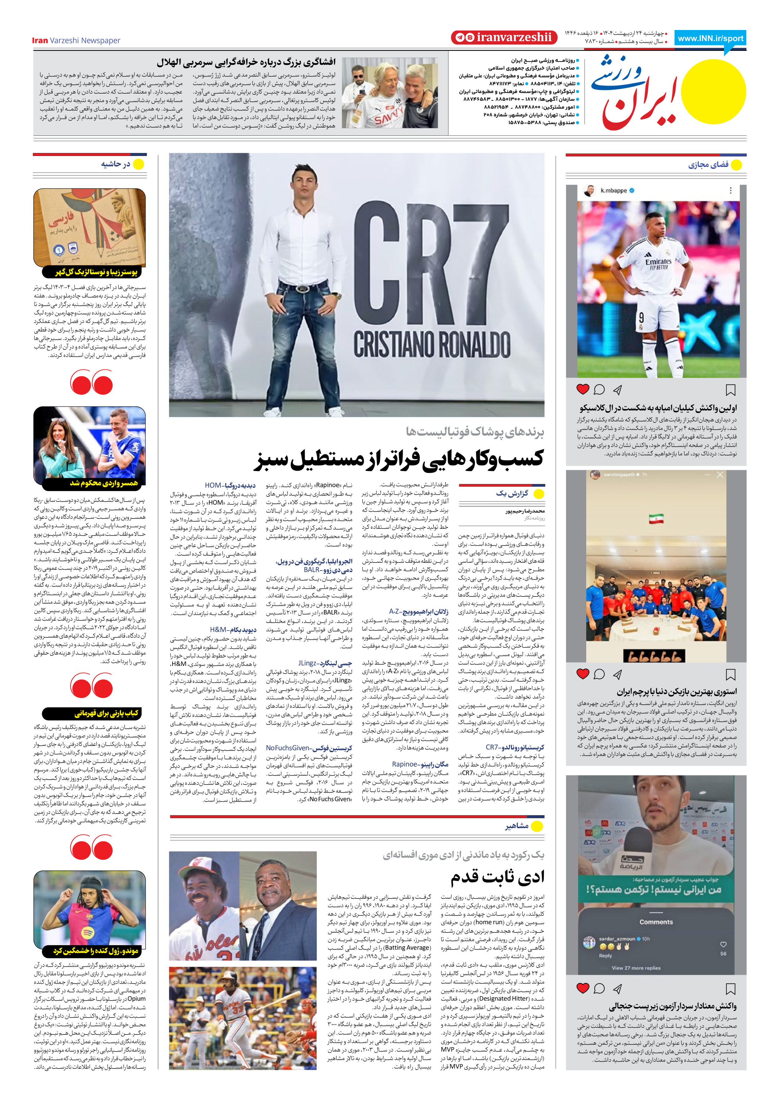 روزنامه ایران ورزشی - شماره هفت هزار و هشتصد و سی - ۲۴ اردیبهشت ۱۴۰۴ - صفحه ۸