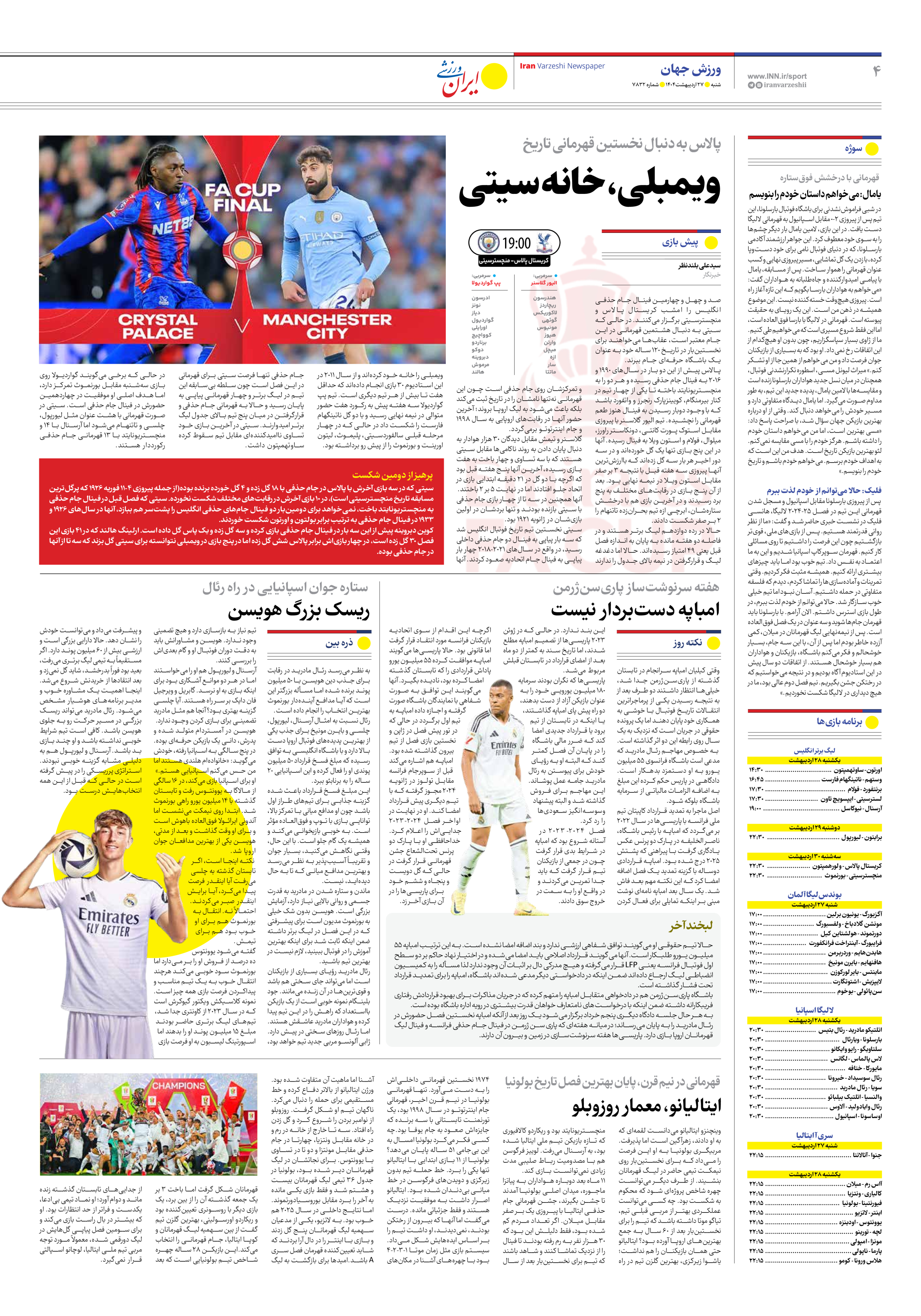 روزنامه ایران ورزشی - شماره هفت هزار و هشتصد و سی و دو - ۲۷ اردیبهشت ۱۴۰۴ - صفحه ۴