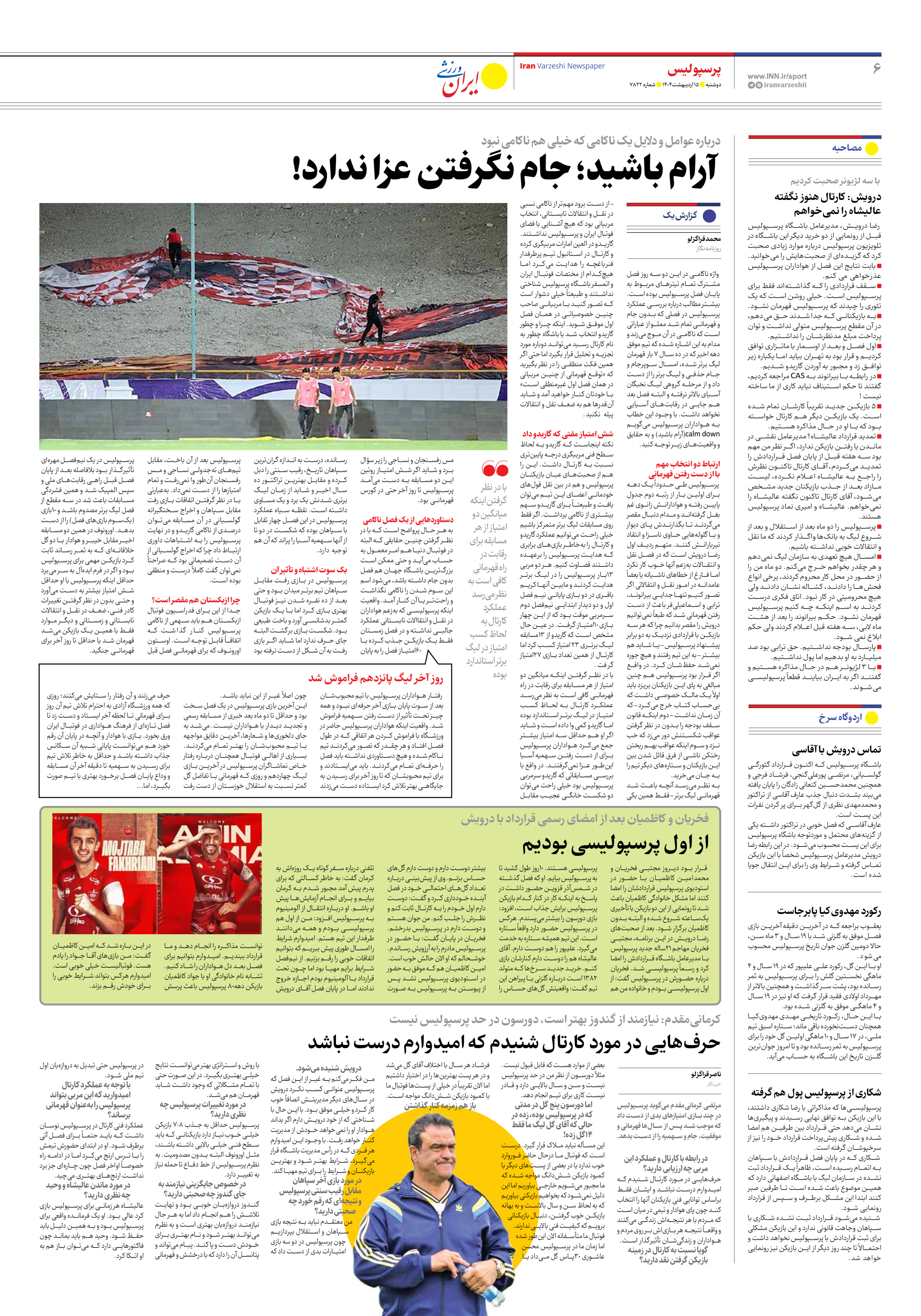 روزنامه ایران ورزشی - شماره هفت هزار و هشتصد و سی و سه - ۲۸ اردیبهشت ۱۴۰۴ - صفحه ۶
