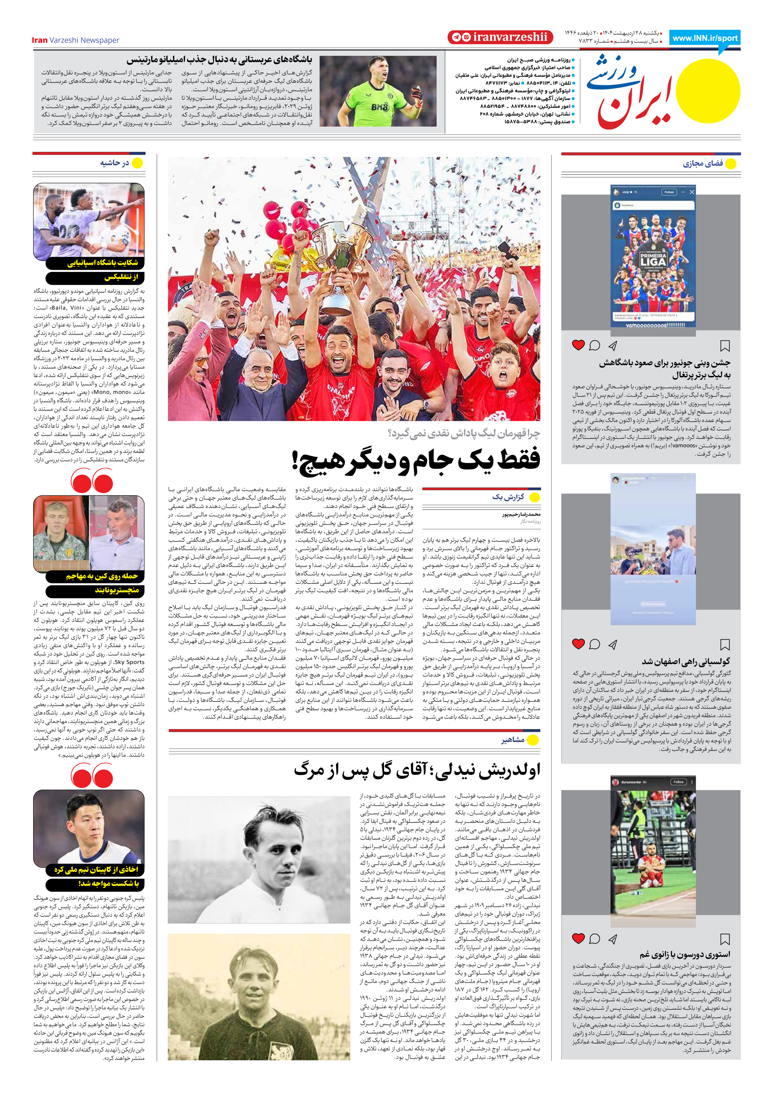 روزنامه ایران ورزشی - شماره هفت هزار و هشتصد و سی و سه - ۲۸ اردیبهشت ۱۴۰۴ - صفحه ۸