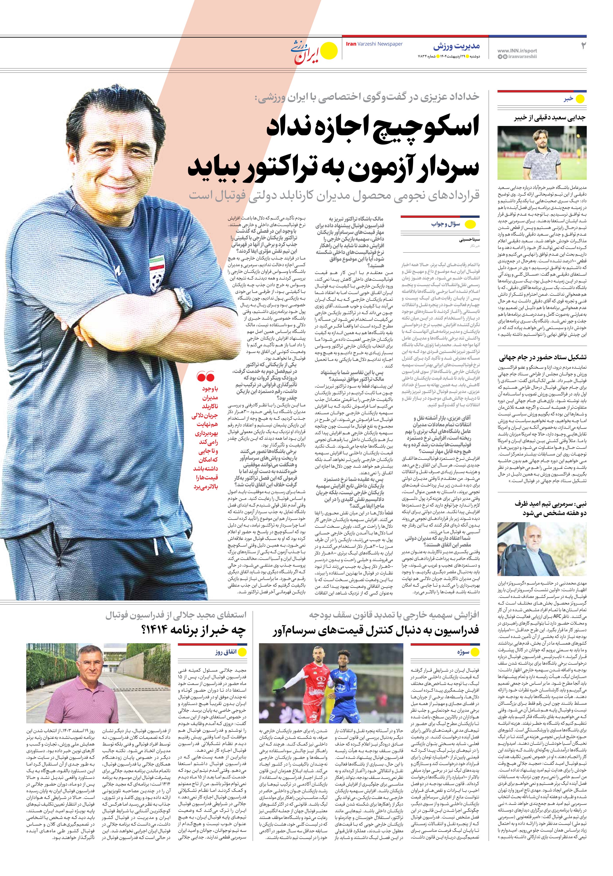 روزنامه ایران ورزشی - شماره هفت هزار و هشتصد و سی و چهار - ۲۹ اردیبهشت ۱۴۰۴ - صفحه ۲