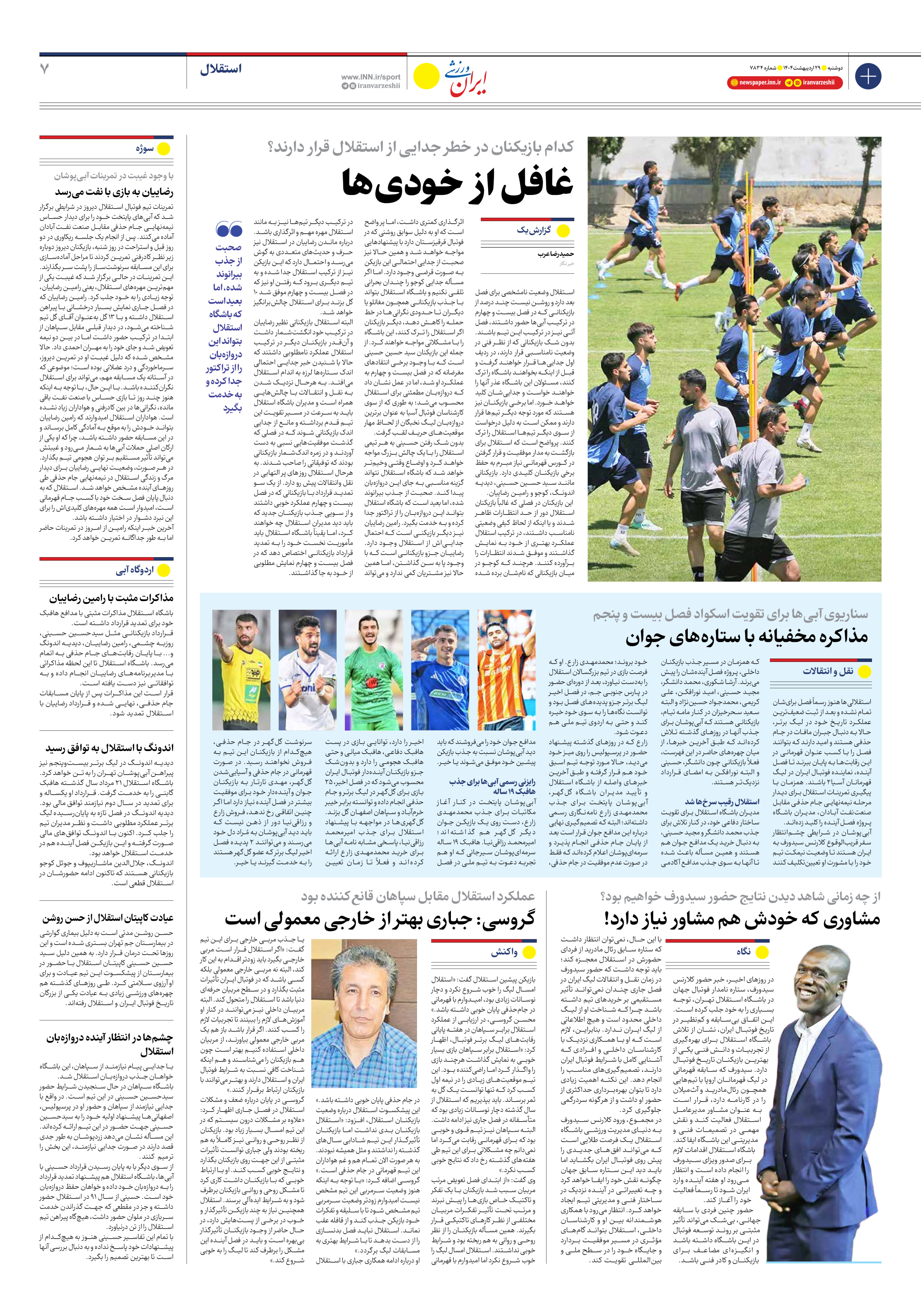 روزنامه ایران ورزشی - شماره هفت هزار و هشتصد و سی و چهار - ۲۹ اردیبهشت ۱۴۰۴ - صفحه ۷