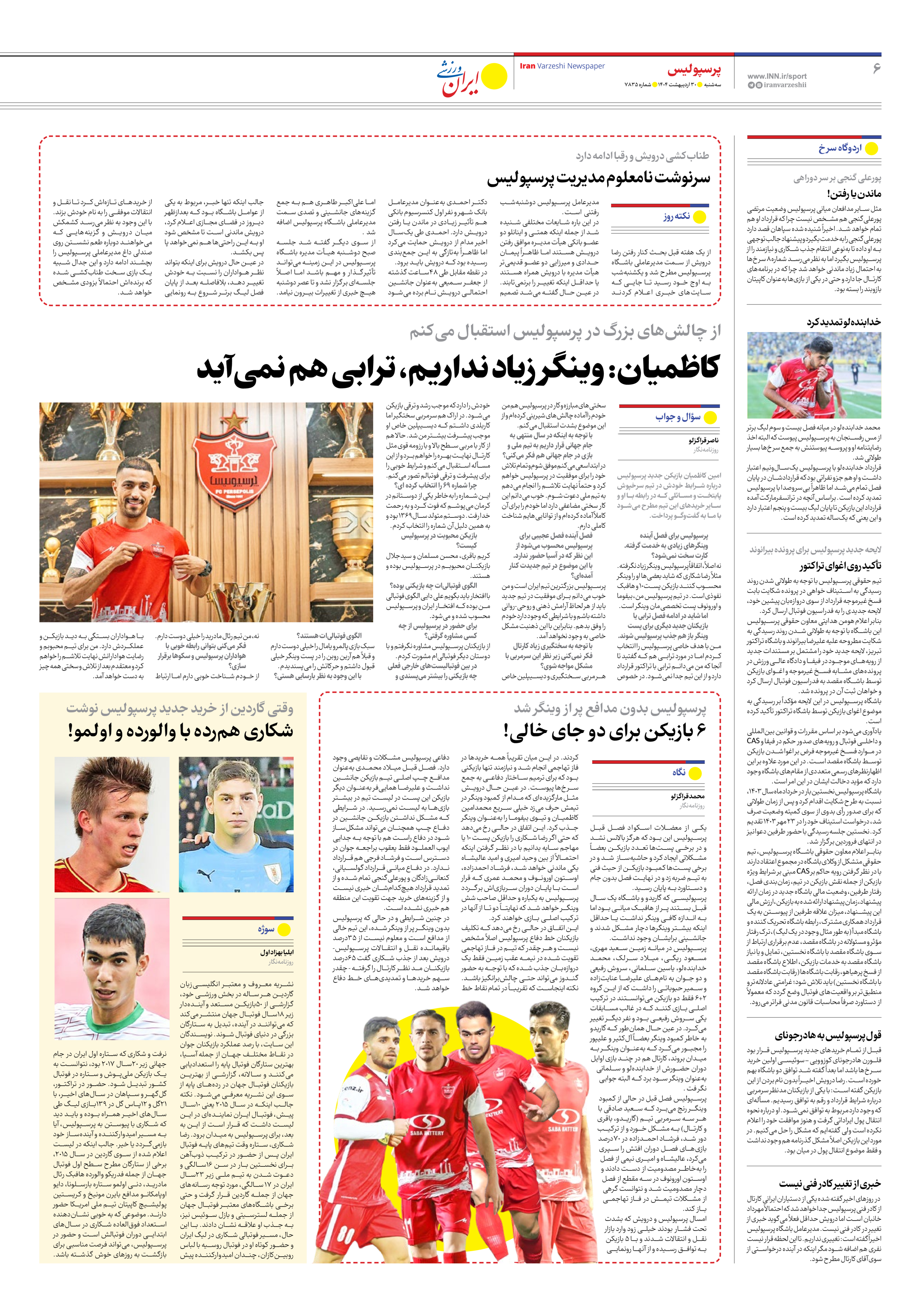 روزنامه ایران ورزشی - شماره هفت هزار و هشتصد و سی و پنج - ۳۰ اردیبهشت ۱۴۰۴ - صفحه ۶