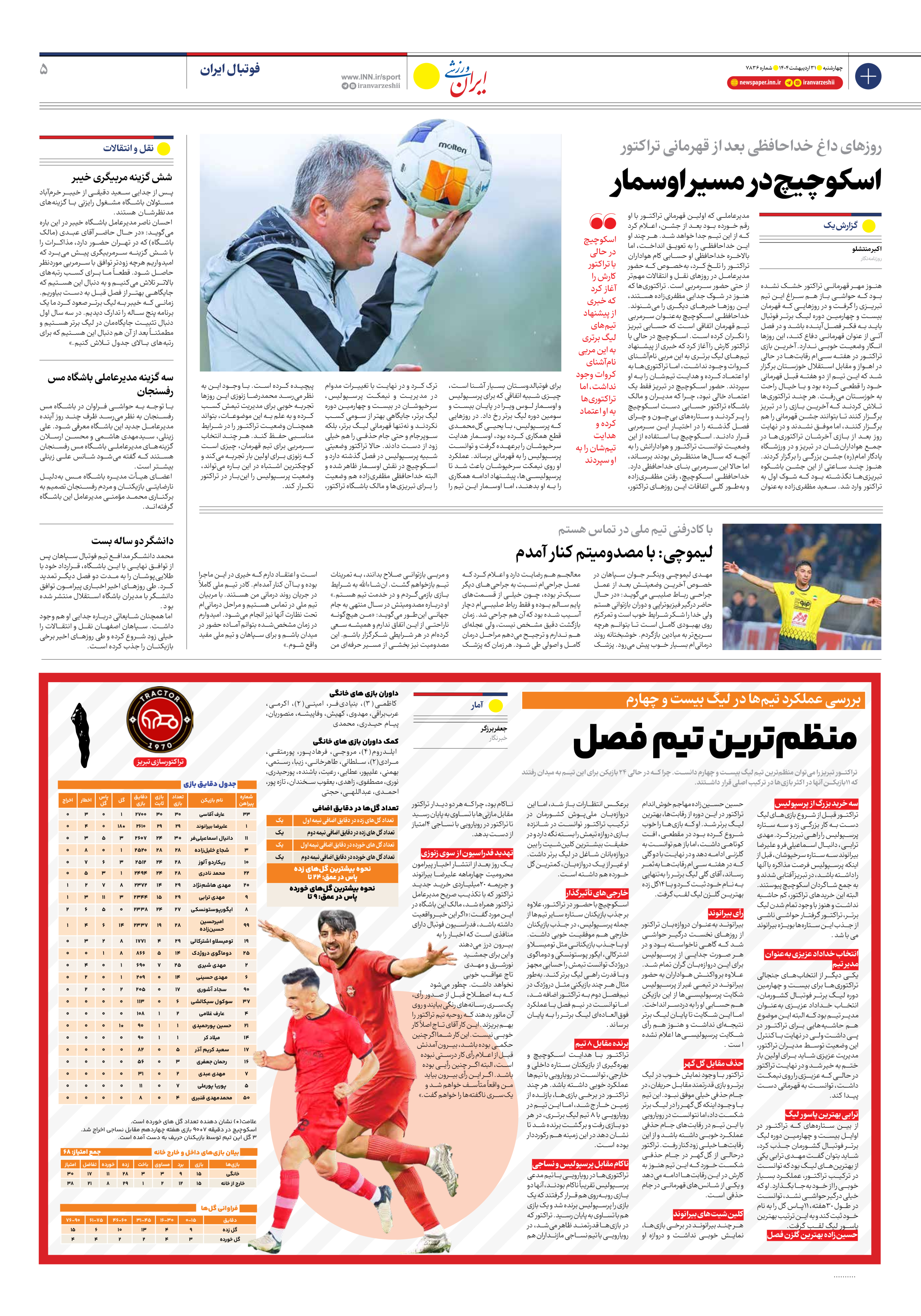 روزنامه ایران ورزشی - شماره هفت هزار و هشتصد و سی و شش - ۳۱ اردیبهشت ۱۴۰۴ - صفحه ۵