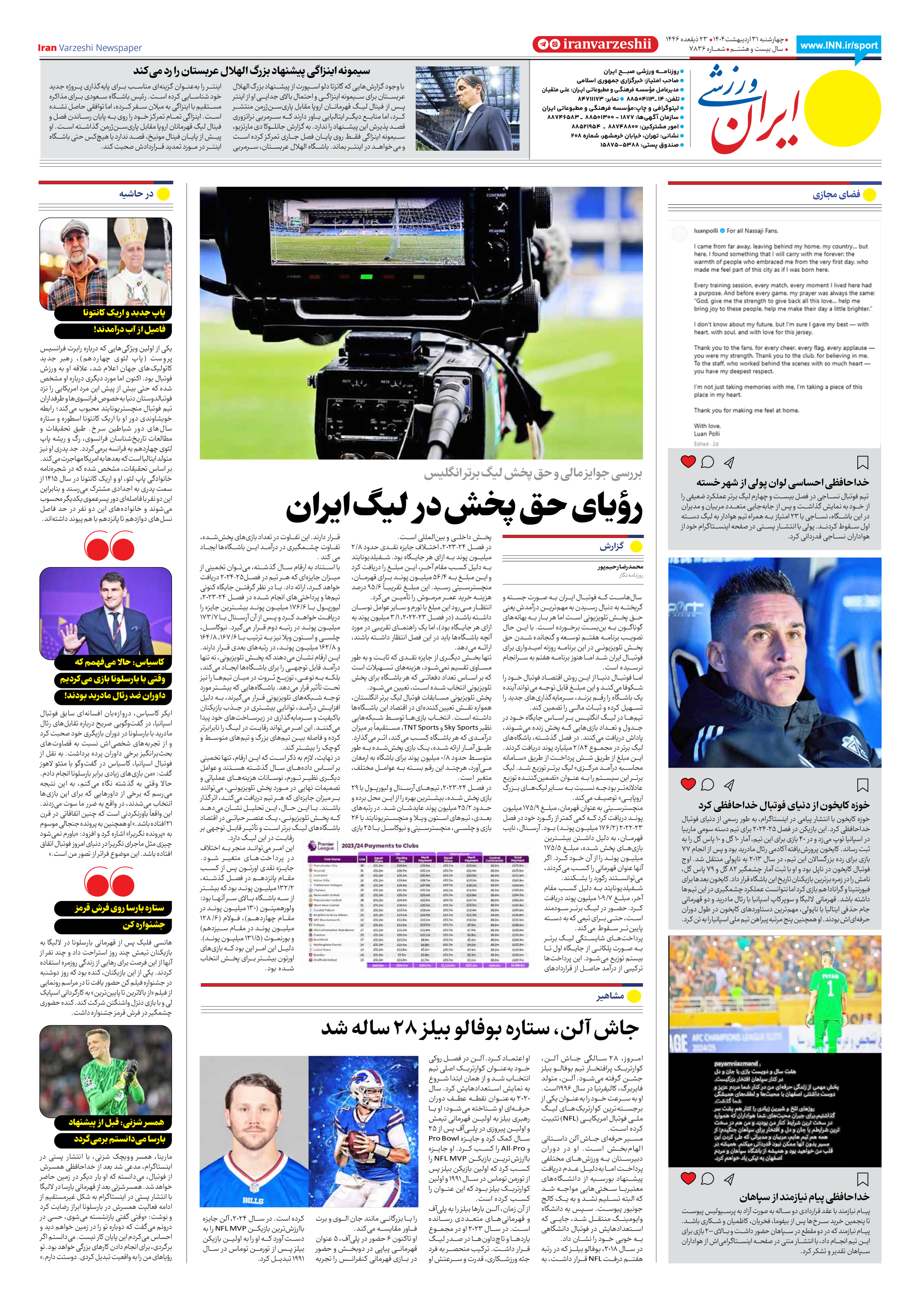 شماره هفت هزار و هشتصد و سی و شش - ۳۱ اردیبهشت ۱۴۰۴