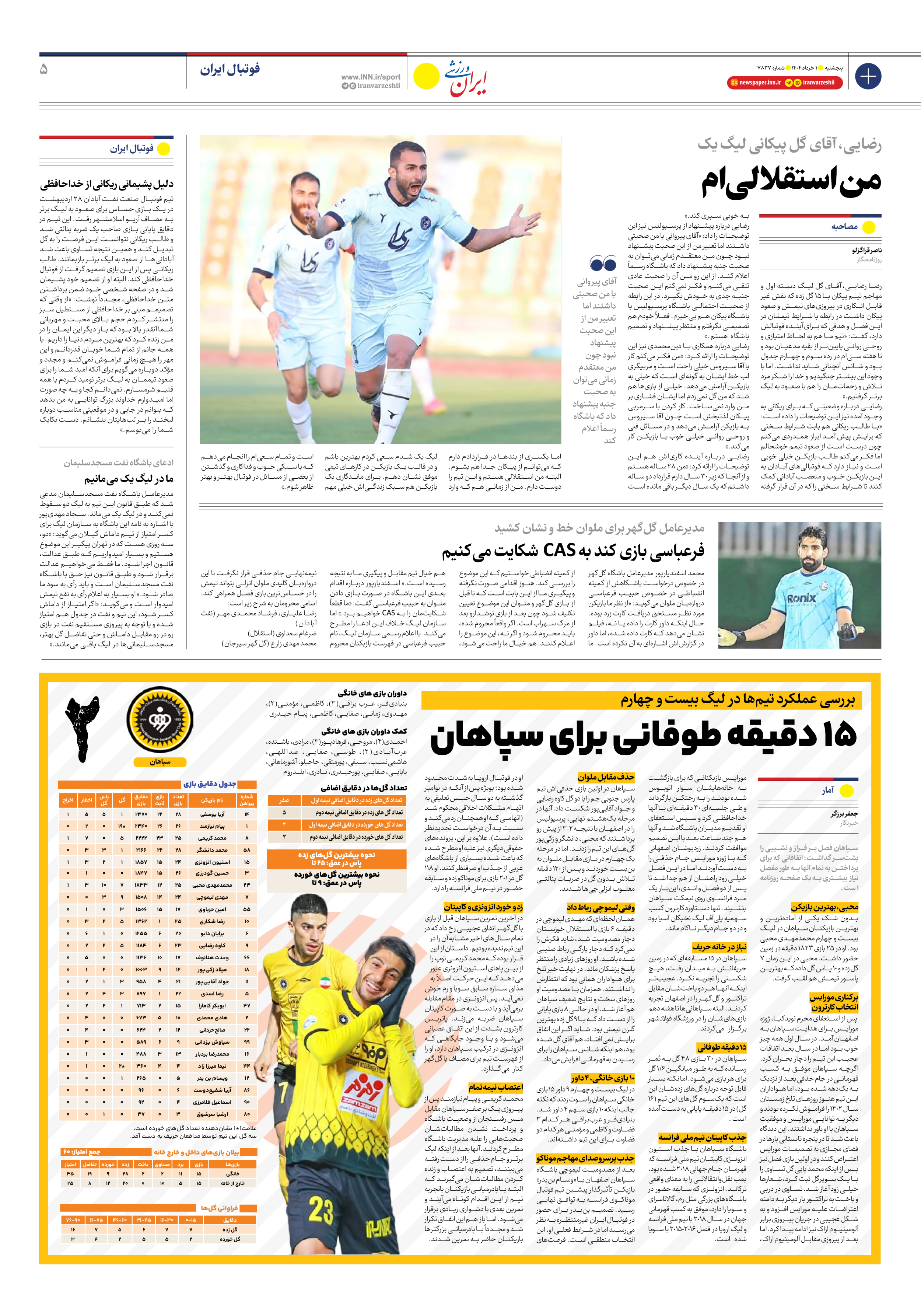 روزنامه ایران ورزشی - شماره هفت هزار و هشتصد و سی و هفت - ۰۱ خرداد ۱۴۰۴ - صفحه ۵
