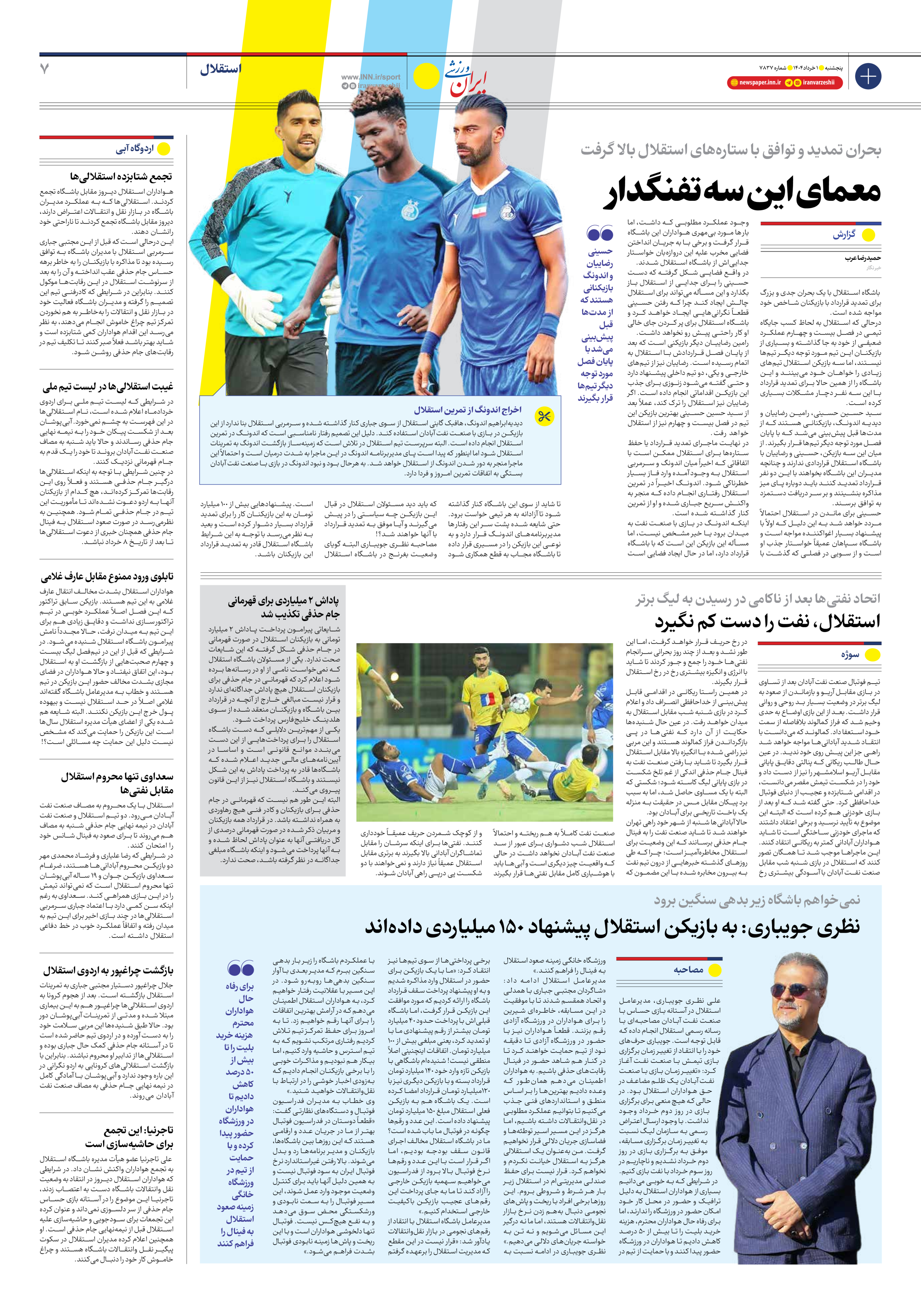 روزنامه ایران ورزشی - شماره هفت هزار و هشتصد و سی و هفت - ۰۱ خرداد ۱۴۰۴ - صفحه ۷